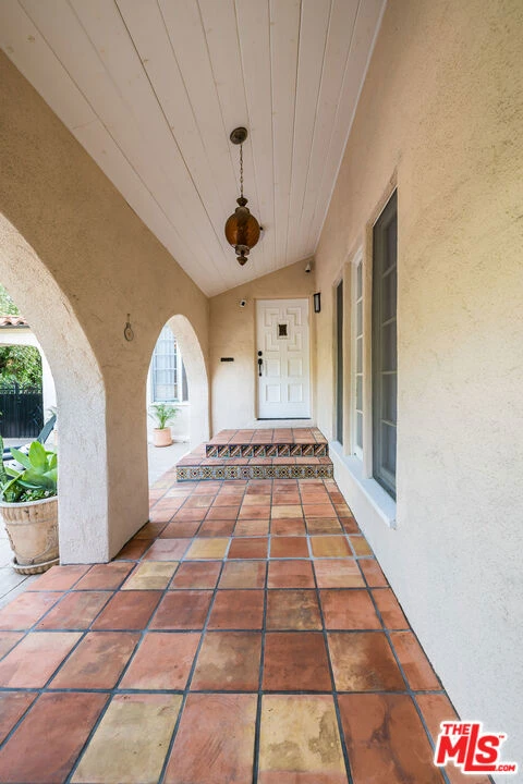 This Spanish-style single story residence is ideally located in the highly sought after Grove area and privately tucked behind mature hedges, creating a serene retreat-like setting. A charming courtyard entry welcomes you into a home that seamlessly blends classic character with contemporary finishes. New light wood flooring throughout enhances the bright, airy feel. The renovated kitchen is designed for both everyday living and entertaining, featuring a center island, updated cabinetry, and quality appliances, all opening to the spacious dining and family areas that function as a true great room. A guest powder room is conveniently located off the main living spaces. The generously scaled step-down living room showcases high ceilings and a striking arched front window that fills the space with natural light. A center hall leads to three ensuite bedrooms, offering comfort and privacy. The backyard is well suited for entertaining and intimate al fresco dining. A converted detached garage structure provides a versatile bonus space complete with a built-in kitchenette and bathroom, ideal for guests, office, or studio use. Just minutes from The Grove, the Original Farmers Market, Pan Pacific Park, Whole Foods, Trader Joe's, and an array of popular shops and restaurants. Electric vehicle charging is available in the driveway, but, there is so much to walk to!