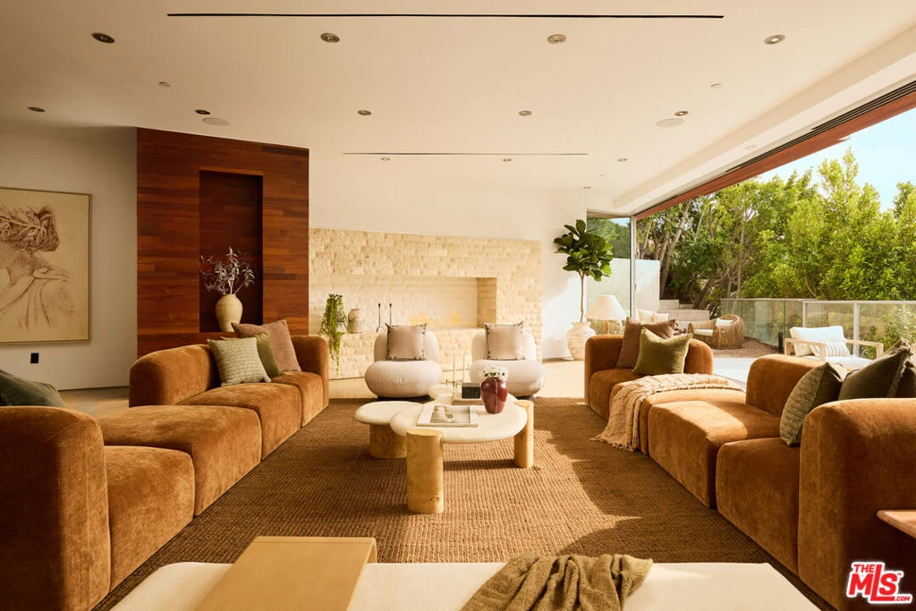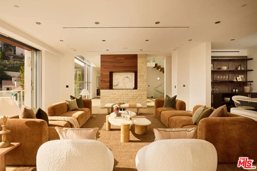 Experience iconic Hollywood Hills glamour at Queens Estate, set above the legendary Sunset Strip on a quiet, gated cul-de-sac at 1700 Queens Court, surrounded by some of the most coveted celebrity residences in Los Angeles. This striking modern residence blends architectural design, cinematic pedigree, and resort-style living. Thoughtfully restored and enhanced, this three-story estate offers approximately 5,612 square feet with four bedrooms and six bathrooms, framed by sweeping city-to-ocean views extending to Catalina Island. A gated motor court leads to interiors defined by volume and light, featuring 10-foot ceilings, a soaring 22-foot foyer, and walls of floor-to-ceiling glass. An open floor plan creates seamless flow between living, dining, and entertaining spaces, anchored by a chef's kitchen with premium Miele and Wolf appliances, custom cabinetry, and integrated smart-home technology controlling the home's functions. The bedrooms at Queens Estate are thoughtfully positioned for privacy and comfort, including three en-suite bedrooms with pool and city views, and a stunning primary suite wrapped in floor-to-ceiling windows capturing panoramic views of the Los Angeles skyline flowing into the Pacific Ocean. The primary retreat is complemented by a spa-style bath with a dedicated steam room powered by a 100-amp circuit. Designed for entertainment at the highest level, the home features a true private cinema with Dolby Atmos, a custom perforated projection screen, and extensive acoustic build-out, alongside a game and entertainment lounge with a full-service bar, wine cellar, and an en-suite guest bedroom. Outdoor living includes a heated saltwater infinity-edge pool, expansive terraces, a horizon-edge fire pit, and an entertainer's-grade sound system a refined expression of luxury living in one of the most celebrated celebrity enclaves of the Hollywood Hills