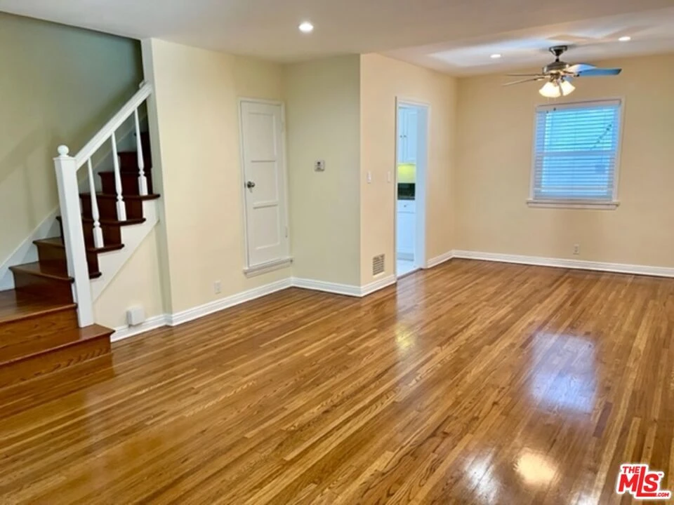 Wonderful Townhouse in a charming garden setting. Located in prime Westwood, just blocks to UCLA. This 2-level townhouse features a one-of-a-kind Private Backyard just for this unit! Enjoy relaxing and entertaining in your own private yard that is fully fenced. Small 4-unit complex. Unit has hardwood floors, double-pane windows, A/C and its own Washer and Dryer. First level has an open living room and dining area. Updated kitchen with granite counters and stainless steel appliances. Kitchen opens out to the private backyard. Stairs up to a large primary bedroom with tree-top views. Second bedroom is perfect for a home office with its own A/C heating unit. Full bathroom with tub and shower. Includes a 1-Car Private garage w/ remote and the space behind it. One small pet considered. Avail approximately May 1st for 1 year or longer. Close to UCLA, Bristol Farms, 99 Ranch market, shops, banks & cafes on Westwood Blvd as well as the 405. By Appt Only with notice.