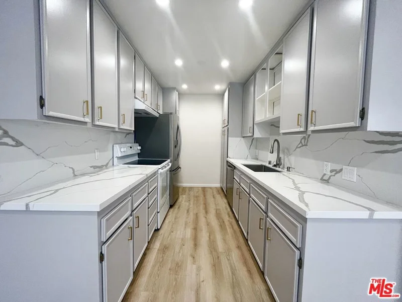 NEWLY REMODELED bright top floor condo in Runyon Canyon / Hollywood Hills! Upgrades include new floors, fully new bathroom with luxury finishes, in-unit washer/dryer, new quartz kitchen countertops and sink, new electric fireplace with quartz mantle, wine bar w/ Viking wine fridge, new recessed lighting, and new closets. Sit on the private balcony to enjoy the Cali weather. Always be comfortable with CENTRAL A/C and HEAT. Building amenities include TWO garage parking spots, gym, rec room, sauna, and heated pool and jacuzzi(under renovation). Just steps from the popular Runyon Canyon Park, a hotspot for hikers. Other nearby spots are the Hollywood Walk of Fame, Dolby Theater, Chinese Theater, tons of restaurants and nightlife, and many more. Tenant only pays for electricity and internet too! Call today for a tour!
