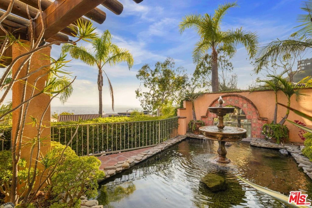 Gated and ultra-private Spanish home with sweeping city views, perched on coveted N. Crescent Heights just above the Chateau Marmont. Offering over 3,100 sq ft of deck and terrace space, a wide street, and exceptional parking ideal for effortless entertaining. Enter through a beautiful courtyard with a tranquil water feature framing panoramic views. Inside, a dramatic living room with double-height ceilings and a wall of French doors opens seamlessly to the outdoors. The open kitchen, dining, and family areas flow to wraparound terraces perfect for large-scale indoor/outdoor living.Upstairs, the primary suite features stunning skyline views, a private deck, a spacious bath with dual sinks and soaking tub, and extensive wardrobe closets. A lounge/den with office nook and oversized attic storage complete the upper level. The lower guest wing includes two bedrooms, a recently remodeled bath with modern finishes, a private deck, and separate entryideal for guests or flexible use. A rare blend of privacy, volume, and unobstructed views in a prime Sunset Strip location.