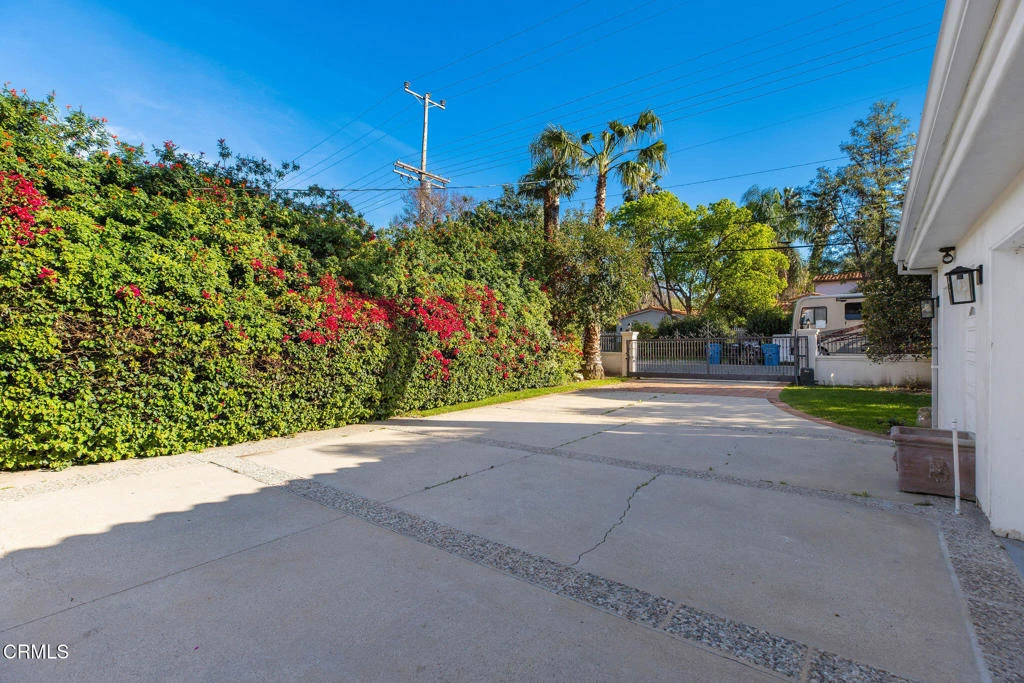 Set in the exclusive Melody Acres neighborhood, this fully turnkey Mediterranean estate sits on a flat, expansive, resort-caliber lot that transforms everyday living into something far more special.Designed for those who value space and privacy, this is the kind of home families wait years for, where everyday living feels like a private retreat and every gathering feels elevated.From the moment you enter, the home opens into a bright and airy main living space where soaring 14-foot vaulted ceilings with exposed beams and an abundance of natural light create an immediate sense of openness. The living room, dining area, kitchen, and wet bar all seamlessly connect, creating a central living hub that feels intentional, ideal for everyday living and effortless entertaining. Light pours in through multiple glass doors that naturally draw your attention outward, hinting at the show-stopping backyard just beyond.The layout balances connection and privacy. A guest suite with its own private bathroom is thoughtfully positioned on the western wing of the home, ideal for visitors, extended stays, or quiet separation from the main living quarters.On the eastern wing, a hallway leads to two secondary bedrooms connected by a Jack-and-Jill bathroom. At the end of the hall, the primary suite unfolds as a true retreat, featuring a walk-in closet and a beautifully appointed bathroom with dual vanities, a soaking tub set beneath natural light, and an oversized walk-in shower.Through the glass doors, you step outside, and the entire experience shifts.Surrounded by mature palms, fruit trees, and lush landscaping, the space unfolds like a private resort, complete with a pool and spa accented by a tranquil waterfall, a cabana-style lounge, built-in BBQ area, and multiple zones for entertaining, playing, or simply unwinding.The grounds extend far beyond what you expect, with a sports court set toward the rear of the property and expansive grassy areas offering endless possibilities, whether for large gatherings, recreation, or creating a true multi-generational compound.Paid-off solar panels and a gated 3-car garage, with one bay currently serving as a flexible bonus space, complete the home's thoughtful blend of functionality and privacy.Opportunities like this, where a lot of this scale meets a fully turnkey character home, rarely come to market.This is more than a home. It's your opportunity to step into the lifestyle you've been waiting for.