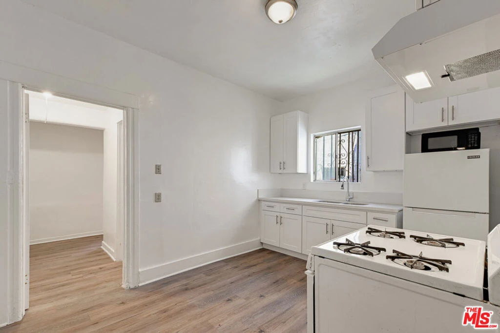 This bright unit features wood-style floors, fresh white walls, and a sleek kitchen with gas stove and white cabinetry. Enjoy a tiled bathroom, ample closet space, and secured gated entry.