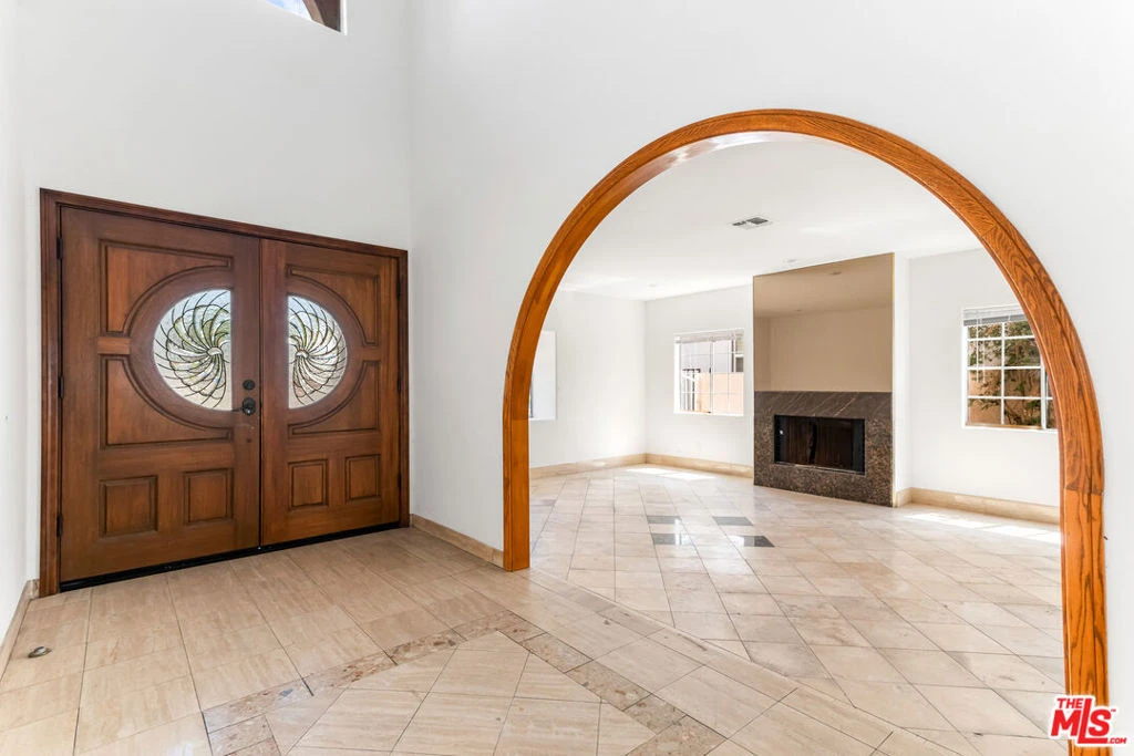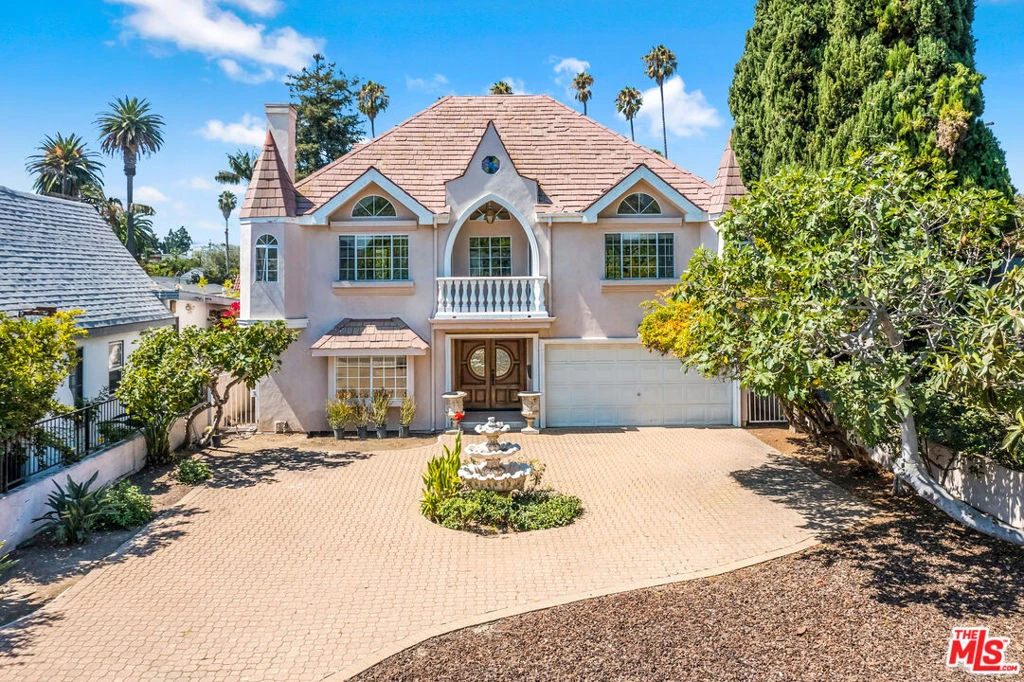 Located in a highly sought-after Westwood neighborhood, this exceptional Mediterranean estate offers five bedrooms, six bathrooms, spanning 3,550 sqft (per title). Situated behind a gated entrance with circular paver stone driveway, the property features a two-car garage, covered patio, and fully enclosed setting with privacy from the street. A formal entry introduces the expansive living and dining areas, connected by custom arched openings and accented by high ceilings, marble flooring, and natural light throughout. The kitchen is equipped with granite countertops, custom cabinetry, a center island, Viking range, and stainless-steel appliances. Multiple glass doors provide access to the backyard, allowing for seamless indoor-outdoor use. Upstairs, a custom spiral staircase leads to an expansive finished attic approx. 1,134 sqft, perfect for a home office, guest suite, playroom, or man-cave! Each of the five bedrooms features an en-suite bath, and direct access to their own private balcony. The large primary suite features a fireplace, dual walk-in closets, private balcony, and a spa-style bath with soaking tub and separate shower. The backyard features hardscape patio areas, multiple mature fruit trees, and low-maintenance landscaping ideal for entertaining. Buyer to verify all information.