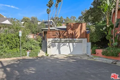 Quintessential Mid-century home with an amazing front porch in a private and peaceful setting at the top of a cul de sac in the coveted Hollywood Dell, the iconic 1920's neighborhood known for its unique architecture, majestic trees, peaceful atmosphere and central location. The home is blessed with natural light and an energizing aesthetic. Large living room and formal dining room with gorgeous hardwood floors in open concept floor plan. Spacious kitchen has industrial flair and a tremendous amount of counter space as well as large pantry and laundry room. Both the formal dining room and the kitchen open to the expansive backyard area. The home is 2 bedrooms and 2-bathrooms, 2nd bedroom could be used as an office; both bedrooms are en suite. Primary bath features a 15 sq.ft. walk-in shower with Kohler steam unit and separate bathtub. The aesthetic interior space, the ample and landscaped grounds, and the magical stetting that feels miles away from it all while being conveniently located to everything good in Los Angeles make this a truly exceptional offering. A Hilltop gazebo overlooks the backyard and the quiet cul-de-sac towards the hills deeper in the Dell. Beautiful and extremely walkable neighborhood with lots of history and wildlife. Nature trails up to, and around, the Hollywood reservoir, or a short jaunt into central Hollywood or the Hollywood Bowl. Fantastic opportunity and difficult to duplicate acquisition.