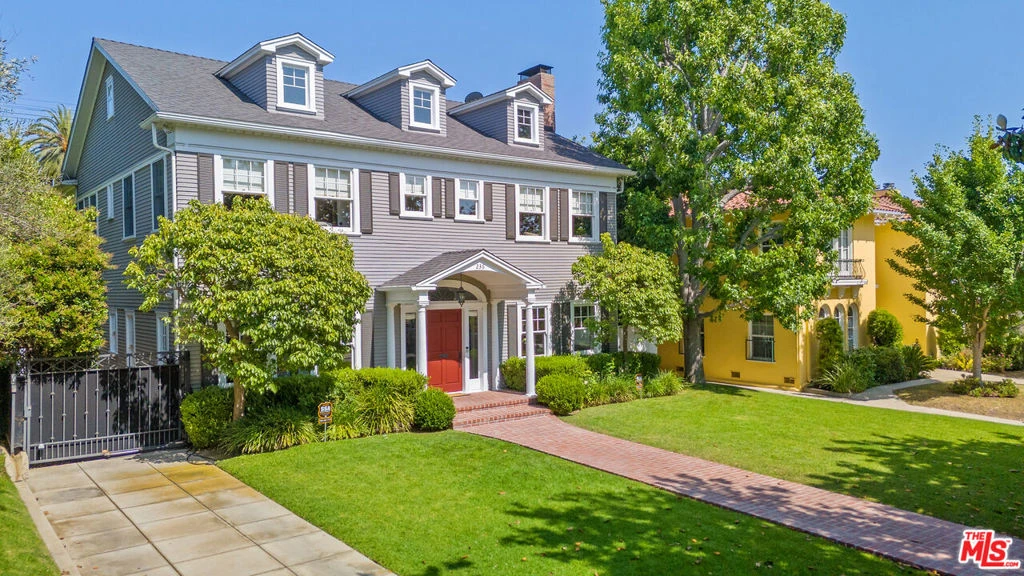 Beautiful East Coast Traditional on Coveted Irving Blvd in Prime Windsor Square. Welcome to this light-filled home that's been lovingly remodeled while keeping all its original charm. A graceful center hall with a sweeping staircase sets the tone as you step inside. To the right, a bright living room with a fireplace opens through French doors to a cozy den overlooking the yard, the perfect spot to relax, watch TV or read a book. A breakfast room connects to the fantastic cook's kitchen featuring high-end appliances, a large center island, tons of storage, and endless counter space. There's even a casual dining area and hangout space with views of the gardens. The back of the house opens to a large entertaining deck that's ideal for summer BBQs and family dinners. You'll also find a formal dining room, a small butler's pantry, and a stylish powder room on this level. Upstairs, the spacious primary suite sits quietly at the back of the house and includes a large walk-in closet, a spa-like bath with a steam shower, and a private roof deck with city and neighborhood views. Three additional bedrooms, two beautifully remodeled bathrooms, and a laundry room complete the second floor. The third floor offers a great bonus space perfect for a gym, playroom, or home office. Out back, the private, hedged yard feels like your own little retreat with a newer pool and spa, outdoor shower, and a great guest house for family and friends. All this just moments from Larchmont Village and everything Windsor Square has to offer. Square footage includes the main house, 3rd floor gym/office and guest house.