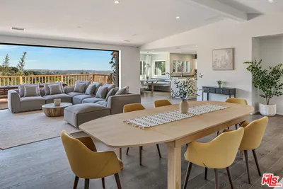 Panoramic canyon and city views, expansive outdoor living, and refined modern interiors define this newly reimagined architectural retreat perched above the street on coveted Carman Crest Drive. Privately set and thoughtfully redesigned, this residence blends elevated Hollywood Hills living with warmth, scale, and effortless indoor-outdoor flow. A dramatic entry welcomes you into a light-filled open floor plan where wide-plank wood floors and clean architectural lines create a sense of calm and volume throughout. The living and dining spaces unfold seamlessly into a stunning entertainer's deck through oversized retractable glass doors framing sweeping hillside vistas and creating an ideal setting for sunset gatherings, al fresco dining and everyday California living. The open-concept kitchen is both functional and refined, featuring a generous center island, sleek modern cabinetry, and integrated appliances, all designed to connect effortlessly with the adjacent dining nook and living areas. Natural light pours in from multiple exposures, enhancing the home's organic palette and tranquil atmosphere. The primary suite is a private retreat, offering serene views, ample closet space, and a spa-inspired bathroom with clean lines, modern finishes, and a calming, understated aesthetic. Additional bedrooms are thoughtfully laid out and well-proportioned ideal for guests, home offices, or creative studios each maintaining the home's cohesive design language. Outdoors, the expansive deck and private yard provide rare usable space in this hillside setting, perfect for lounging, entertaining, or quiet moments surrounded by nature. A spacious two-car garage and additional storage complete the home, offering both convenience and practicality. Located moments from Hollywood, Studio City, and the iconic trails of Griffith Park, this refined hillside residence delivers privacy, views, and architectural integrity an inspired offering for buyers seeking elevated design and effortless Los Angeles living.