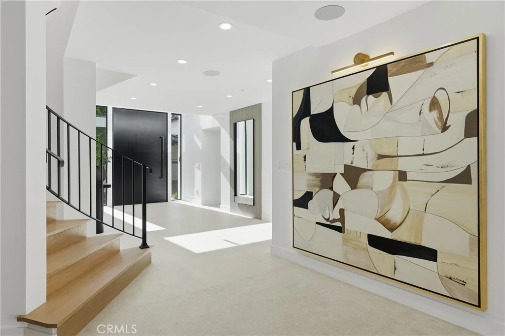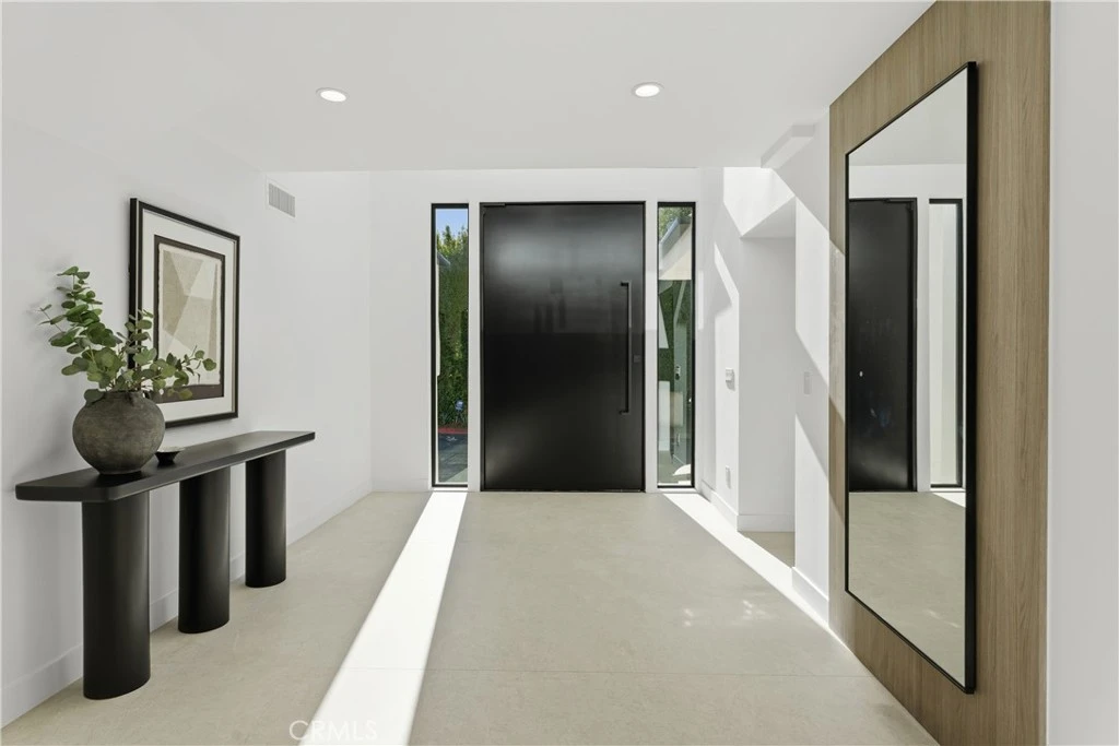 Perched in the coveted Hollywood Hills, this newly reimagined modern home is a striking expression of luxury, design, and harmony with nature. Thoughtfully crafted to elevate everyday living, the residence offers an exceptional indoor-outdoor lifestyle moments from the Sunset Strip and Los Angeles’ most celebrated dining and nightlife. Spanning six bedrooms and six and a half bathrooms, the home welcomes you with a dramatic open-concept floor plan defined by great spaces and impeccable finishes. The main level showcases oversized 60x60 Italian tile flooring and custom European flat-panel cabinetry throughout. The living room is anchored by a breathtaking Calacatta marble fireplace that flows seamlessly into the dining area and a custom-built wine room ideal for entertaining. The state-of-the-art chef’s kitchen blends form and function with Italian porcelain slabs wrapping the oversized island, cabinetry, and backsplash, complemented by Graff fixtures and a Calacatta marble hood. Thermador appliances include a built-in refrigerator, precision coffee system, six-burner range with double oven, dishwasher, and micro-drawer microwave. Custom lighting enhances every detail. A curved staircase illuminated by lighting leads to the private living quarters. The expansive primary suite is a serene retreat, framed by oversized picture windows that invite the surrounding landscape indoors. Custom cabinetry, an oversized walk-in closet, and a spa-inspired bathroom complete the experience. The primary bath features dual vanities topped with Calacatta marble, premium fixtures, a freestanding soaking tub, and a generous walk-in shower with built-in steam, all bathed in natural light. Additional four ensuite bedrooms continue the home’s refined aesthetic with curated designer finishes.The lower level offers a versatile sixth bedroom currently configured as a media room, ideal for a family lounge or executive office, complete with an ensuite bathroom and custom built-in cabinetry with refrigerator. Bathrooms throughout the residence showcase Porcelanosa wall and floor tiles, custom vanities, LED mirrors, and high-end fixtures. Fleetwood sliding glass doors open to a private resort-style oasis with a smart pool and spa, outdoor kitchen with dual grills including charcoal, a cabana, and stairs leading to an elevated overlook deck with sweeping views. This Hollywood Hills retreat is a rare offering, blending architectural elegance, modern luxury, and an unparalleled location.