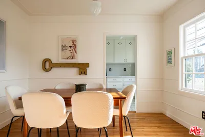 Located in the heart of Los Feliz, this enchanting 2-bedroom, 1-bath residence is part of The Griffith, a 1940 property designed by architect H. J. Hamer. Thoughtfully reimagined by Better Shelter, the home pairs classic architectural character with a refined, modern sensibility and is situated within the coveted Ivanhoe Elementary School district. An arched entry introduces light-filled interiors highlighted by signature curved bay windows and original hardwood floors. A formal dining room offers a distinct gathering space, while the renovated kitchen features custom cabinetry, marble countertops, and timeless tilework. Two private outdoor areas expand the living experience, and a bonus cellar provides valuable additional storage. Original details are complemented by curated vintage lighting, custom stained glass, and tailored design touches throughout. The property has undergone comprehensive system upgrades, including a new roof, sewer line, updated electrical and plumbing, central HVAC, fencing, and landscaping. A private garage adds everyday convenience. A rare Los Feliz offering that combines architectural pedigree, thoughtful restoration, and an exceptional location in a move-in-ready residence.