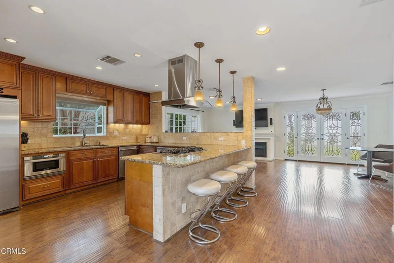 Nestled at the end of a cul-de-sac in the coveted Westside Village neighborhood, this charming ranch-style home offers privacy and tranquility. As you approach, an inviting front porch sets the stage for a warm welcome, complemented by the stained glass adorning the entry. The heart of the home is the gourmet kitchen equipped with stainless steel appliances including a Viking oven, custom wood cabinetry, ample counter space and peninsula with seating. Designed for entertaining and comfortable living, the open concept layout seamlessly connects the kitchen to the spacious living room. French doors lead out to the backyard retreat where a large grassy area, surrounded by brick pavers, provides the ideal setting for outdoor gatherings and relaxation. The primary bedroom is complete with a wall-to-wall closet and ensuite bath with a jetted tub and walk-in shower. Three additional bedrooms provide versatility and space for guests or home office needs. Additional features include central HVAC with Nest thermostat, recessed lighting, keypad entry, new tankless water heater and 2-car garage. Experience the best of Westside living in this lovingly maintained home, conveniently located within the Clover Avenue Elementary school district and minutes from Culver City, Century City, Venice, Westwood and Beverly Hills!