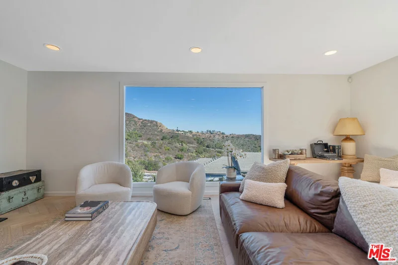 Perched in the Hollywood Hills, this fully furnished urban contemporary retreat captures sweeping views of the Santa Monica Mountains, Lake Hollywood, and glittering city lights, an escape from the rush of everyday life. Fenced and gated for privacy, the main residence features 3 bedrooms and 2 baths, while a separate guest studio/ADU with its own entrance, kitchenette, and bath offers flexible space for entertaining, office, gym, or overnight guests. Expansive windows, French doors, and open-concept living invite the outdoors in. From the dramatic fireside living room to the formal dining area and a full-length glass terrace, every space is designed to showcase the breathtaking scenery. The kitchen makes a stylish statement with quartz countertops, fresh color accents, breakfast island, and stainless appliances. The split-level primary suite is a sanctuary, with floor-to-ceiling windows, dual closets, a spacious sitting area, and a deluxe en suite bath. Recently reimagined from top to bottom, the home blends thoughtful design with modern convenience, including a brand-new roof, smart home technology, and a fully wired security system ready for seamless living from day one. This 2,705 sq. ft. residence offers rare tranquility in a sought-after Hollywood Hills West enclave known for its privacy and celebrity pedigree. A true hillside gem where design meets lifestyle.