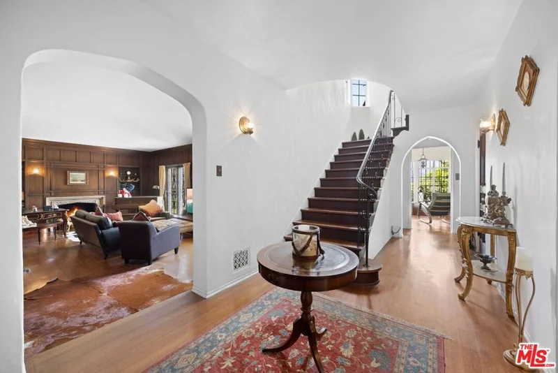 Welcome to a timeless piece of Los Angeles history. Available for the first time in over six decades, this stunning 1931 Tudor Revival home, designed by architect Rollin F. Pearson, sits on a private lot with sweeping views of the Los Feliz Hills, Glendale, and the San Gabriel Mountains.Combining classic English charm with authentic craftsmanship, this two-story residence is a masterpiece of enduring design. From the rich redwood beams and traditional lath and plaster walls to the exquisite original details, the home retains its historic elegance. Step inside and discover beautifully preserved oak tongue and groove floors, stained wood doors, and original light fixtures and hardware. The grand staircase, featuring an original wrought iron railing, is bathed in natural light, as is the rest of the home throughout the day.The elegant dining room is perfect for hosting, complete with French doors that open to an expansive veranda. The living room is a true showstopper, adorned with floor-to-ceiling mahogany paneling, leaded stained glass, and a grand wood-burning fireplace. The spacious kitchen features original tiles and rich stained wood cabinetry, a butler's pantry, and a bar with mahogany countertops. A cozy breakfast room opens to the patio, an ideal spot for morning coffee.Upstairs, three spacious bedrooms offer generous closets, built-in cabinetry, and multiple breathtaking views. The primary en-suite and second bath showcase classic original Spanish tiles and fixtures that have been meticulously preserved. A fourth bedroom and bath on the main floor provides private accommodations for guests or maids quarters.The spacious basement offers potential for a wine cellar or a "bodega," and the lush grounds are dotted with mature oak trees. The flat backyard is a rare find and an ideal space for entertaining or for adding a pool. This is more than a home; it's a piece of Los Angeles history in one of its most desirable neighborhoods.