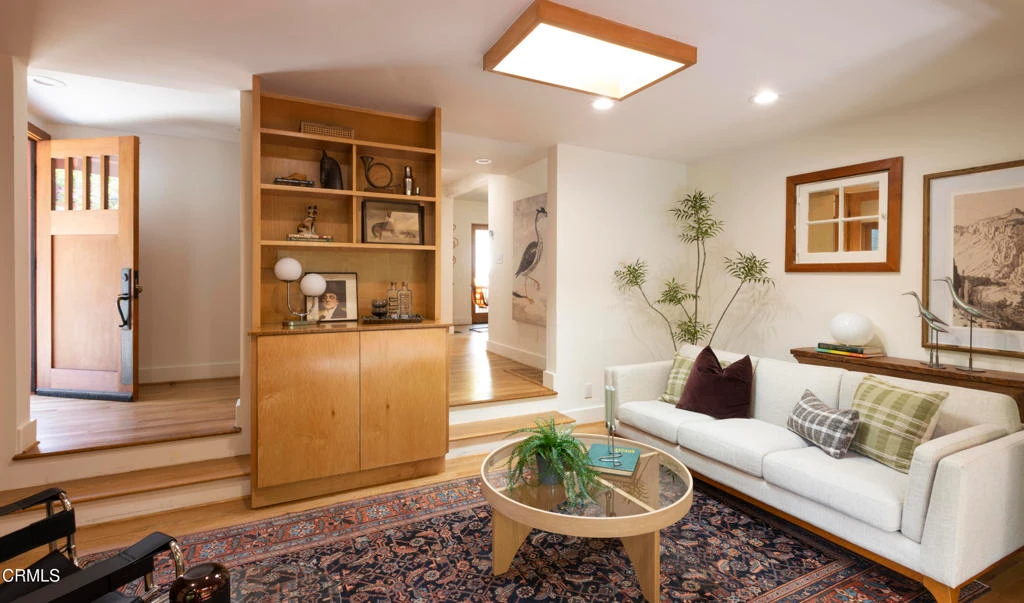 Built in 1921, this private and rustic former hunting lodge has been tastefully updated, blending old world charm and modern amenities. Nestled on a large street to street gated lot in a prime Mount Washington location, this lushly landscaped bungalow oasis has many upgrades including natural wood built-ins, skylights, refinished wood floors and ceilings, a newly remodeled bathroom, as well as a large utility / bonus room off the kitchen with custom natural wood cabinetry and cork floors-perfect for a workout or hobby room. This 2 bed, 1 bath sanctuary is cited in a park-like setting amongst native landscaping and mature trees designed by Judy Kameon of LA landscape architecture studio Elysian Landscapes. Multiple decks, patios, and entertaining areas with flat pads and walkways surround the home, offering many opportunities for relaxing and entertaining. A private gated entry leads to the property's several patios and decks and to the detached studio/office-flex space, with its own separate entrance. The light-filled home includes a spacious living room that opens to the large-covered deck. The open kitchen opens to the dining room and to the front patios. The property also features a large walk-in primary closet with built-ins, a cold plunge, wine fridge, outdoor shower, ample enclosed storage below the house, and a relined sewer line. A private sanctuary, yet close to bustling Highland Park, Metro's Southwest Museum station, DTLA and freeways.