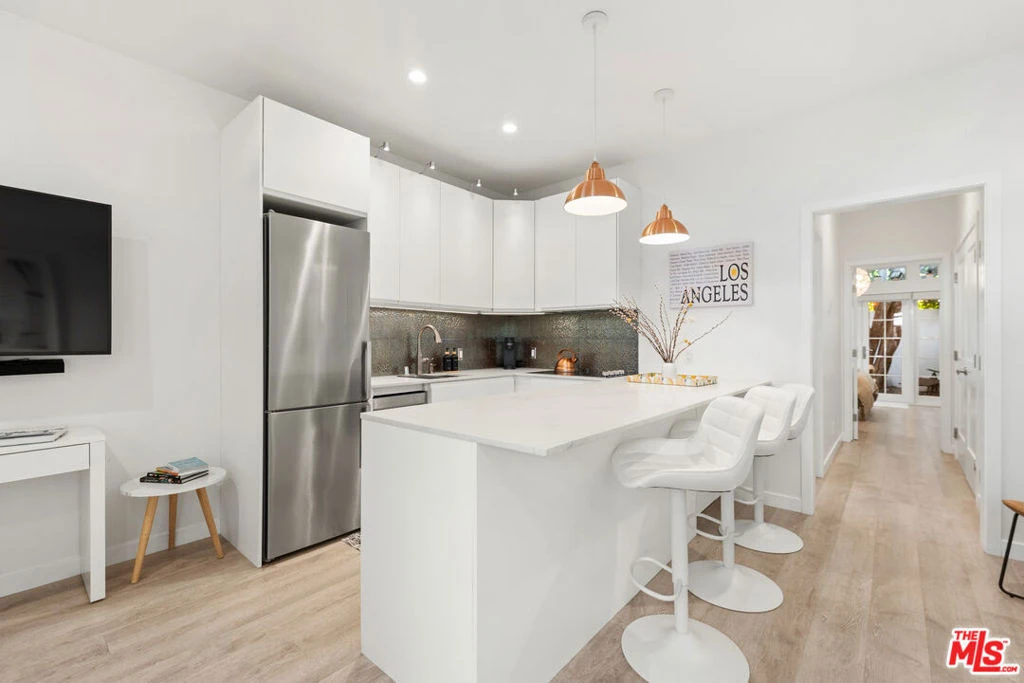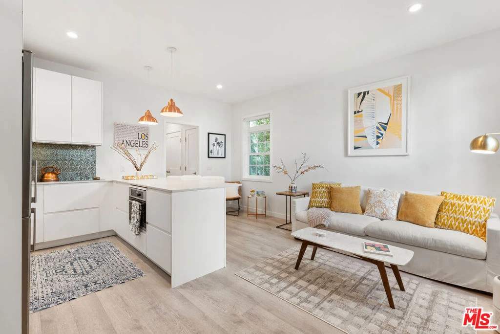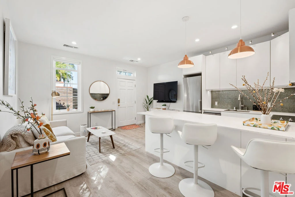 Tucked within a quiet residential enclave in the Melrose district, this beautifully designed fully furnished one-bedroom, one-bathroom Spanish contemporary house offers refined living with exceptional privacy. Sunlight pours through expansive windows and French doors, creating a bright, airy interior that seamlessly connects to a tranquil private garden patio shaded by mature trees. The open-concept living space is thoughtfully appointed with upscale furnishings, wide-plank flooring, and a modern kitchen featuring quartz countertops, stainless appliances, and a central island - perfect for both everyday living and entertaining. The serene bedroom retreat includes a queen bed, workspace, and elegant French doors opening to a private Zen-inspired outdoor lounge. Additional amenities include washer/dryer, central heat and air conditioning, high-speed internet, keyless gated entry, and multiple outdoor relaxation areas, all curated to provide a comfortable, turnkey living experience. Ideally located moments from the shopping, dining, and creative hubs of Melrose Avenue, The Grove, and Pacific Design Center, with convenient access to Hollywood, Downtown Los Angeles, and Santa Monica. A sophisticated, private retreat in one of Los Angeles' most vibrant and central neighborhoods.