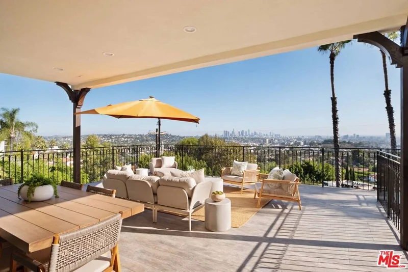 Stunningly renovated Hollywood Regency with explosive, head-on views from Downtown LA to the Westside city lights and all the way to the ocean. Perched on an expansive nearly 18,000 SF lot, this sophisticated 5BD/4BA residence seamlessly blends classic glamour with modern livability. Recently renovated throughout, the home thoughtfully restores its original architectural charm while elevating every space with refined transitional design upgrades. Refurbished period steel windows and newly opened trussed-beam vaulted ceilings amplify scale and volume, flooding the interiors with natural light and creating an airy, elegant ambiance. The reimagined and newly expanded primary suite offers a true retreat, featuring generous proportions, elevated finishes, and serene, top-of-the-world vistas. Outdoors, the property transforms into a private resort sanctuary. A brand-new, cantilevered infinity-like pool anchors the grounds, complemented by multiple expansive patios, sun-drenched terraces, and pergola-covered lounging and dining decks all designed for seamless indoor/outdoor living and effortless entertaining in the quiet hills. A one-of-a-kind, fully permitted engineered sports court delivers exceptional versatility, accommodating basketball, pickleball, soccer, hockey, or virtually any recreational pursuit you envision. Truly extraordinary, the property offers an expansive, usable flat yard nearly unheard of while still commanding sweeping, dramatic views. Located just minutes from the iconic boutiques, cafes, and dining destinations of Los Feliz's Vermont and Hillhurst corridors, yet tucked away with exceptional privacy and tranquility, this home represents elevated hillside living at its finest.