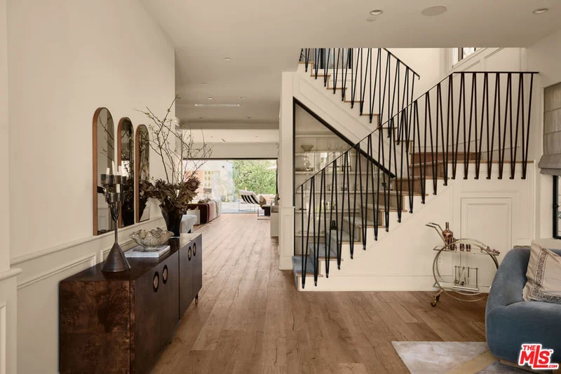 Discreetly positioned along a palm-lined street in a desirable Beverly Hills adjacent neighborhood, this thoughtfully designed residence blends architectural style with effortless California living. Ideally situated near some of the area's favorite coffee spots, restaurants, and neighborhood hangouts, the home offers the perfect balance of residential calm and easy access to the local scene. Reimagined by The House of Honey, the interiors feature Calacatta marble surfaces and wide-plank oak floors throughout, creating a warm and refined aesthetic. Architectural iron doors provide a striking entry to the home's open, inviting layout, with a glamorous fireplace to greet you, wrapped in scalloped leather. The main level offers seamless flow between living spaces, ideal for both entertaining and everyday living. The kitchen serves as the heart of the home, highlighted by a sculptural curved center island with bar seating, designed to encourage gathering, conversation, and morning coffee. The main family room has a large, distinctive fireplace to gather around. A dedicated wellness pantry adds a distinctly LA touch. Also on the main level is a chic powder room and an additional en suite bedroom currently used as a private office, ideal for guests or a work-from-home setup. The attached garage provides direct access to the residence for added convenience and security. Upstairs, the expansive primary suite offers a peaceful retreat with a luxe fireplace, two walk-in closets, and a marble bathroom featuring a soaking tub and a private balcony. Three additional en-suite bedrooms upstairs balance the traditional floor plan. A bright laundry room and a designer reading nook create a quiet, functional space. Outdoor living is designed for relaxation and entertaining with a resort-style pool and cabana featuring a fireplace, surrounded by lush landscaping and warm ipe decking. A standout feature is the rooftop entertaining deck, complete with a wet bar, dishwasher, ice maker, and fireplace, offering an elevated setting for gatherings and views that include the iconic Hollywood Sign. The rooftop is made for sunset aperitivos and rooftop dinners, which flow into late-night gatherings. Additional highlights include fully integrated smart-home technology and thoughtfully curated finishes throughout. A remarkable opportunity to enjoy sophisticated indoor-outdoor living in one of Los Angeles' most sought-after neighborhoods.