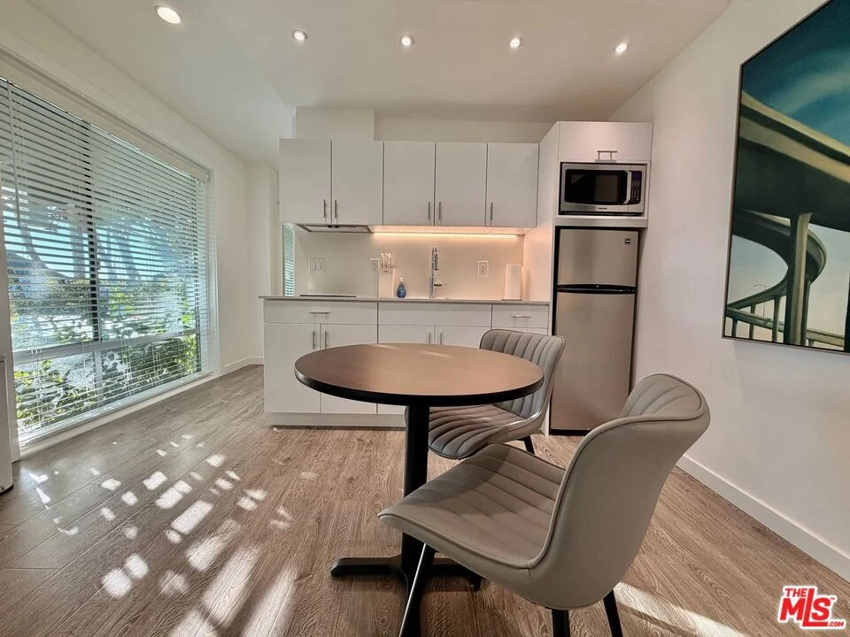 Furnished executive studio overlooking the pool at The Wilshire Embassy, a refined Mid-Century apartment community in the heart of Miracle Mile. Ideal for corporate housing and extended stays, this light-filled residence features air conditioning, a flat-screen, wall-mounted TV and a large picture window with calming pool views. The modern kitchenette is equipped with a stainless steel refrigerator, microwave, and electric cooktop - perfect for professionals seeking comfort and efficiency. Thoughtfully furnished with an open, functional layout, this studio offers a turnkey living solution for short-or-long-term stays. Located along Wilshire Boulevard, just minutes from major studios, medical offices, corporate hubs, and cultural institutions. Walkable to museums, the SAG-AFTRA Building, Equinox, Ralphs, cafes, and services, with easy bus access and new Metro subway stations opening in 2026 for seamless citywide connectivity.