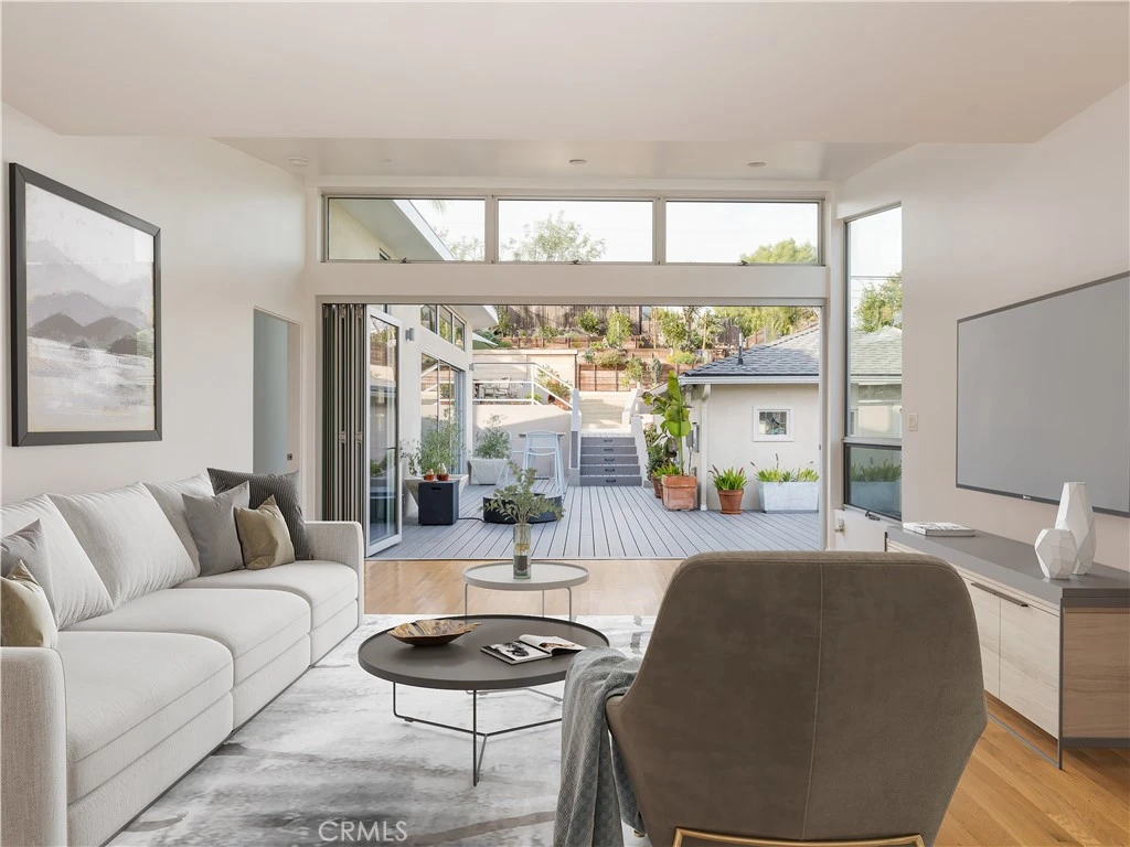 Welcome to a discreet Westchester gem modest from the street, yet unforgettable the moment you step through the front door… and again when you arrive at the pool. This exceptional 3-bedroom, 2-bath home delivers the kind of indoor-outdoor lifestyle Southern California is famous for effortless, warm, and designed to be enjoyed from sunrise to late evenings. Inside, a welcoming living room with fireplace sets the tone, while expansive folding windows dissolve the boundary between indoors and out, opening to a generous deck that becomes a natural extension of the home perfect for entertaining or quiet everyday living. The kitchen is beautifully anchored by a Wolf range and flows seamlessly into the main living space. The primary suite is a true sanctuary, featuring air conditioning, electric curtains, and thoughtful comfort throughout. Practical upgrades and features include attic storage access, a newer roof with solar panels, an instant hot water heater for endless hot water, updated gas piping, and completed termite work for peace of mind. Outdoors, the 8,000 sq ft lot feels like a private oasis: a tiered landscape with automated sprinklers, multiple terraces, and an extraordinary edible garden—apple, satsuma mandarins, Meyer lemon, papaya, avocado, citrus caviar, lime, persimmon, kale, lavender, rosemary, basil, strawberry, artichoke, and grapefruit. Spend afternoons by the pool, unwind in the jacuzzi cascading into the water, and enjoy the calm energy that surrounds the property. An additional highlight is the future potential for an ADU, studio, or atelier space (buyer to verify), with plumbing and electrical access conveniently nearby—ideal for work-from-home, creative pursuits, or extended living. Just minutes from Playa Vista, Marina Del Rey, El Segundo, and LAX, this is California living at its finest: understated from the street, unforgettable once inside.