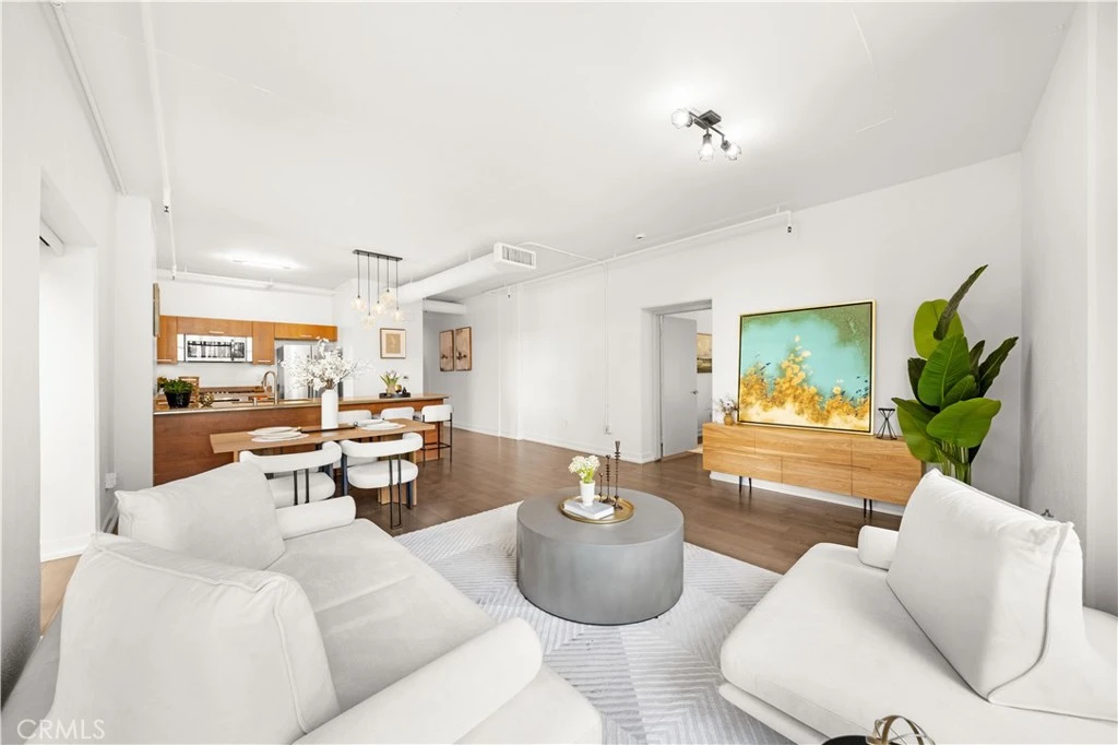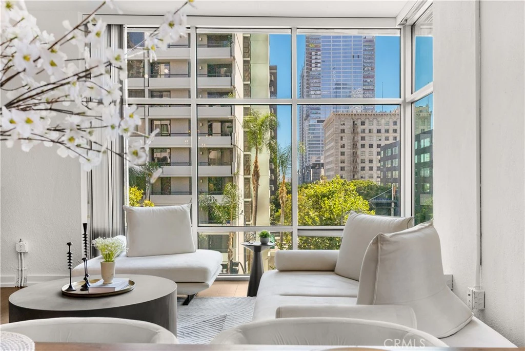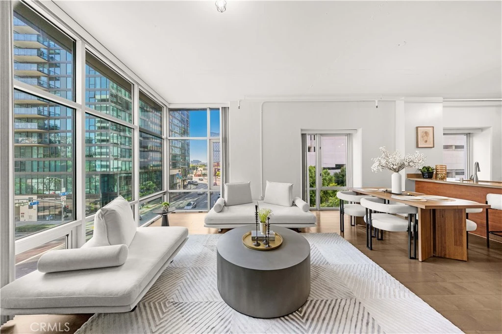 This amazing rare corner residence offers expansive southwest-facing floor-to-ceiling windows that flood the home with natural light. The elegant interior features wide-plank hardwood flooring throughout, an open-concept layout, and a sleek kitchen appointed with Ceaserstone quartz countertops, a Whirlpool five-burner gas range, stainless steel appliances, and in-unit washer/dryer. 2 generously sized, gated side-by-side parking spaces are included. Market Lofts provides 24-hour concierge service, ensuring security and seamless package and delivery management. Amenities include a resort-style pool, 20-seat private screening room, fitness center, clubhouse, and BBQ area. Ground-level conveniences include Ralph’s, Coffee Bean, and more. Ideally located within walking distance to Whole Foods, LA Live, The Bloc, fine dining, and upscale retail. Experience refined urban living in the heart of Downtown LA.