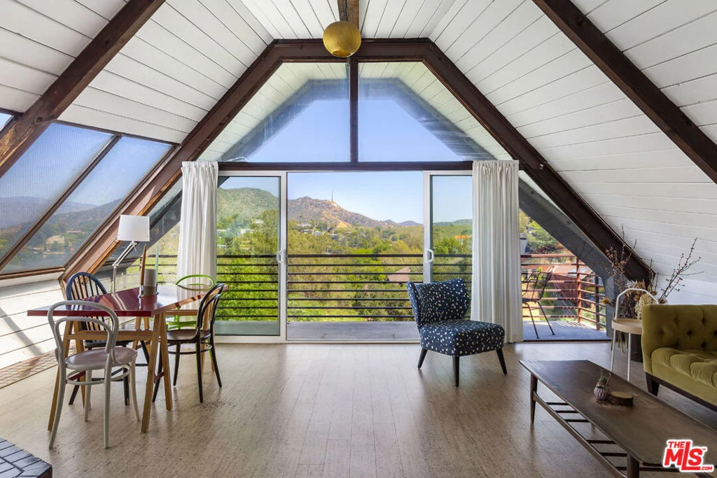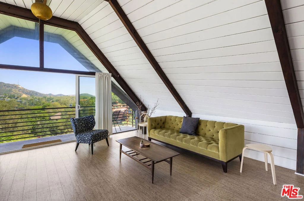 Available for lease, a rare opportunity to live within iconic architecture in the Hollywood Hills. This "Boat House" by architect Harry Gesner was crafted in 1959 by Norwegian shipbuilders, one of eight such residences floating above the treetops in a peaceful canyon setting. Massive windows and sliding doors bring sunshine throughout the day along with a spectacular panorama of verdant hillsides, twinkling lights and the Hollywood Sign. Midcentury architectural details abound including open beams, exposed wood, cork flooring and a unique fireplace. Two bedrooms and an office loft provide everything you need for life-work balance; closet space is ample and the bath has been updated. Enjoy seamless access to the deck where morning coffee and evening cocktails will taste sublime. Amenities include a dishwasher, laundry, central heat+air and covered parking. Sequestered from the city you are just minutes from coffee, dining and hiking trails in Runyon Canyon. Hollywood, Toluca Lake and Studio City are nearby.