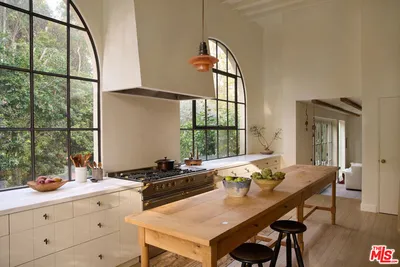 Nestled on a serene discreet street, this expansive Spanish estate embodies timeless elegance. Originally designed by Fred Smathers and exquisitely reimagined by Broad Project, the home seamlessly blends classical architecture with modern sophistication. Thoughtfully updated, this five-bedroom, five-bathroom residence is enveloped by lush, mature landscaping, including stately olive, citrus, and eucalyptus trees. A shimmering pool and spa, multiple outdoor living areas, and an exceptional floor plan create a truly idyllic retreat. Stepping through the foyer, you are welcomed by stunning European oak floors that set the tone for the home's refined aesthetic. The soaring living room ceilings enhance its sense of grandeur, while a large picture window bathes the space in dappled natural light. A striking fireplace, framed by Roman clay walls, serves as a focal point, complemented by bespoke built-in cabinetry and Fortuny lighting. The kitchen is a true masterpiece, featuring arched steel windows, a coveted Lacanche range, and a meticulously crafted solid oak island. Designed for both beauty and function, it flows seamlessly into the informal living room, where French bifold doors open to an expansive outdoor sanctuary ideal for effortless indoor-outdoor living. The primary suite is a private haven of impeccable design, with French doors leading to a secluded patio. Its spa-like ensuite bath is adorned with old-growth walnut built-ins, a luxurious soaking tub, a walk-in steam shower, and a generous walk-in closet. Two additional bedroom suites each offer elegantly appointed baths and spacious walk-in closets. Adjacent to the pool, a separate living space with a bar provides exceptional versatility for entertaining. Complete with a sauna and cold plunge, it serves as a refined wellness retreat, perfectly suited as a home gym, office, or guest quarters. An exceptional property of beauty, tranquility, and understated luxury, offering warmth, privacy, and an unparalleled living experience.