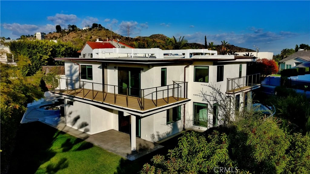 Experience the breathtaking beauty of this newly remodeled Contemporary/Modern home in Mt. Olympus! This exclusive, gated sanctuary boasts 3 bedrooms and 4 bathrooms across two light-filled stories. Hardwood floors throughout, a formal dining room, and a living room complete with a cozy fireplace make this home perfect for entertaining and relaxation. The living room opens up to a lush, green yard with towering trees and a fragrant flower garden, creating a peaceful and serene atmosphere. The spacious modern kitchen, complete with a breakfast bar, opens to a warm and inviting den. Upstairs, three spacious bedroom suites await, with the main bedroom offering spectacular Century City and Ocean views and an oversized patio. The backyard is an unparalleled oasis, with a very private wrap-around area featuring a grassy lawn, pool, and spa, offering panoramic views of the surrounding area. Don't hesitate to claim this unique and beautiful home as yours!