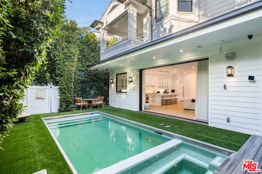 Welcome to a modern Cape Cod masterpiece offered fully furnished, that blends timeless design, high-end finishes, and cutting-edge smart home technology in one of West Hollywood's most coveted neighborhoods. Thoughtfully designed with effortless indoor-outdoor flow, this residence offers the perfect balance of warmth, sophistication and innovation. Step inside to find elegant, light-filled living spaces, including formal living and dining rooms, a cozy family lounge and a sun-drenched breakfast nook. The chef's kitchen is a showpiece in itself, anchored by Sub-Zero and Wolf appliances, custom cabinetry and exquisite designer detailing. Retractable glass doors open to a private backyard oasis, featuring a covered patio, a white-pebble pool, and an automated spa, ideal for entertaining or everyday retreat. Upstairs, the primary suite serves as a serene sanctuary, complete with dual couture closets and a marble-clad spa bath featuring a soaking tub, steam shower, and dual vanities. Two additional flexible spaces, a custom-built office and a state-of-the-art soundproof home theater, offer unmatched versatility for modern living. Every inch of this home is elevated by smart technology and security, including a fully integrated Control4 system, Bose surround sound, and a gated entry. This is a rare opportunity to own a home that perfectly embodies sophistication, innovation, and the best of West Hollywood living.