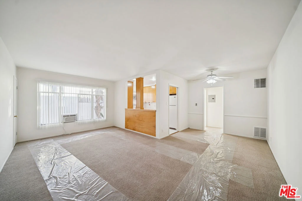 This inviting upper-corner one-bedroom, one-bathroom residence offers a bright and comfortable living experience in the desirable Beverly Grove area, with approximately stated features and a layout designed to feel open and airy. Abundant natural light enhances the warm character of the space, complemented by plush carpeting and climate control options that include heat, a window air-conditioning unit, and a ceiling fan. The kitchen features tile countertops and essential appliances, including a freestanding stove and refrigerator, creating a practical and functional cooking environment. The well-maintained building provides a peaceful outdoor patio area with mature citrus trees and a convenient bike rack, along with on-site laundry facilities. Additional details include permit street parking, pets permitted per building policy, tenant responsibility for gas and electricity, and owner-provided water, trash, and landscaping. Square footage is approximate. Buyer or renter to independently verify all information.