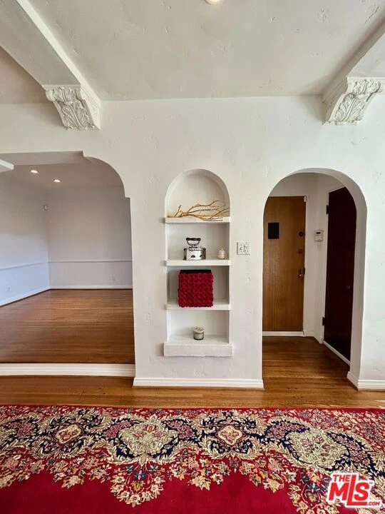 A sun-filled, beautifully reimagined lower-level 2BR/2BA residence sits within a classic Spanish duplex and blends timeless architectural character with a sophisticated, modern renovation. The expansive living room flows effortlessly into a formal dining room and a charming breakfast nook off the newly remodeled kitchen, featuring premium stainless-steel appliances and designer-selected finishes. Two large bedrooms, with the primary suite offering a spacious walk-in closet and a stylish en-suite bathroom. Multiple windows in every room bathe the home in natural light, enhancing the warm, inviting atmosphere. Thoughtfully curated throughout, the home showcases rich hardwood floors, graceful arched doorways, recessed lighting, high ceilings, and tastefully remodeled bathrooms with upscale materials and contemporary fixtures. Additional highlights include central A/C and heat, a brand-new in-unit washer and dryer, a security system, reverse osmosis water filtration, covered 2-car garage parking, and a versatile layout ideal for everyday living or working from home. The property also features a welcoming courtyard framed by olive trees and a backyard filled with fruit trees. Perfectly situated location, Beverly Hills adjacent, walking distance to houses of worship, and moments from Robertson Blvd, Beverly Center, Cedars-Sinai, Pico-Robertson, parks, dining, and shopping. Available for immediate occupancy.