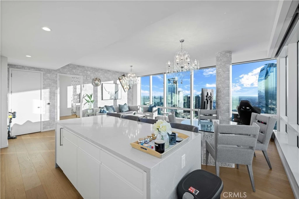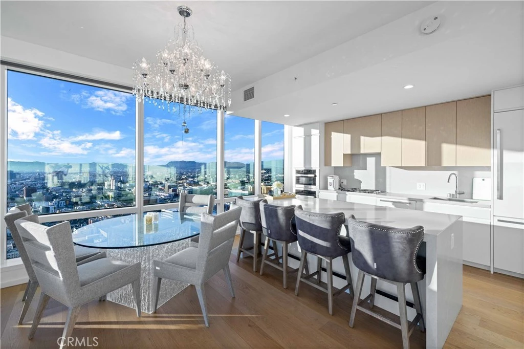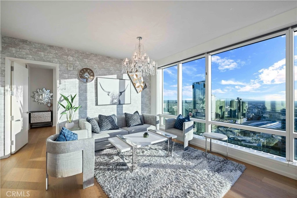 Experience elevated luxury on the 41st floor at Metropolis Tower II. This stunning 2-bedroom, 2-bath corner residence offers sweeping, multi-directional views of the DTLA skyline, Hollywood Hills, and dramatic sunsets through floor to ceiling windows that fill the home with natural light. The open layout features wide plank oak flooring, high ceilings, and a beautifully designed gourmet kitchen with Caesarstone countertops, custom soft close cabinetry, and premium Miele & Bosch appliances. The spacious primary suite includes a walk-in closet and a spa inspired bath with sleek contemporary finishes. Both bedrooms capture breathtaking views. Metropolis offers one of DTLA’s best amenity collections, including a resort-style pool, cabanas, sky garden, fitness & yoga studio, billiards lounge, business center, putting green, children’s play area, dog park, plus 24/7 lobby attendant and concierge. Located steps from Crypto Arena, LA Live, the Financial District, South Park, world-class dining, shopping, and entertainment. Metropolis offers unmatched urban conveniences. Luxury high-rise living at its finest, welcome home to Tower II at Metropolis.