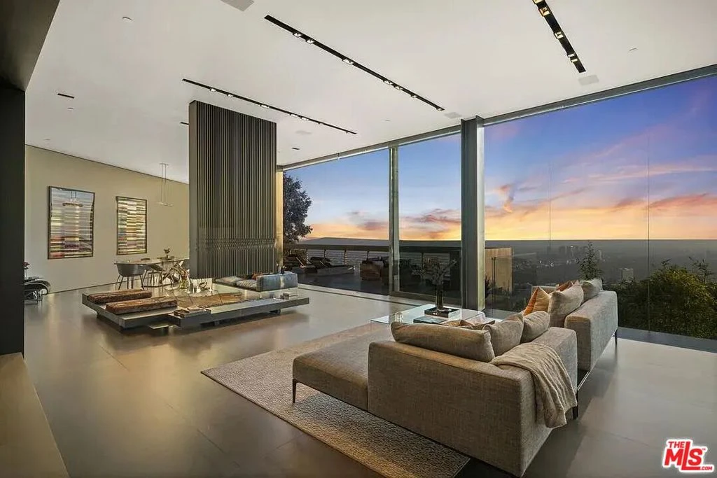 Nestled in the prestigious upper Hollywood Hills, this three-story architectural masterpiece, built in 2017, spans 5,736 square feet of contemporary luxury. Seamlessly blending cutting-edge design with breathtaking surroundings, the home features an open-concept layout adorned with floor-to-ceiling windows, radiant natural light, and impeccable finishes throughout. At its heart lies a chef's dream kitchen, outfitted with top-tier Gaggenau appliances, perfect for culinary enthusiasts and professional caterers alike. For seamless entertaining, the expansive outdoor space boasts a stunning 30-foot heated infinity pool, a relaxing hot tub, and mesmerizing views of the cityscape. Dual decks, multiple fire pits, automated sound systems, and various seating areas create the ultimate backdrop for social gatherings or intimate evenings. The opulent primary suite offers a private retreat, complete with panoramic views of Los Angeles, a luxurious soaking tub, a spacious glass-enclosed shower, and dual porcelain sinks. The residence further impresses with additional bedrooms, media rooms, and game spaces, providing versatility for any lifestyle. Additional highlights include a two-car garage and a state-of-the-art security system. Conveniently located near high-end shopping, trendy restaurants, entertainment hotspots, and chic cafes, this home epitomizes the glamour of life in the City of Angels. Discover unparalleled sophistication and embrace the Hollywood Hills lifestyle today.