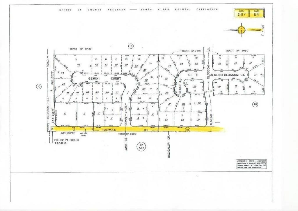 This is a unique opportunity to own a piece of Los Gatos history. This property consists of three parcels (APNs 567-64-009, 567-18-073 and 567-18-074) that are basically a 30 foot wide strip from Harwood Road to the properties on the East side of Harwood Road and extends from Blossom Hill Road up the hill to past Alerche Drive. Altogether this is nearly 2 acres. It is highly unlikely that building a home or putting any type of structure would be permitted but there is room to park vehicles or plant a vineyard or put the land to some other creative use.