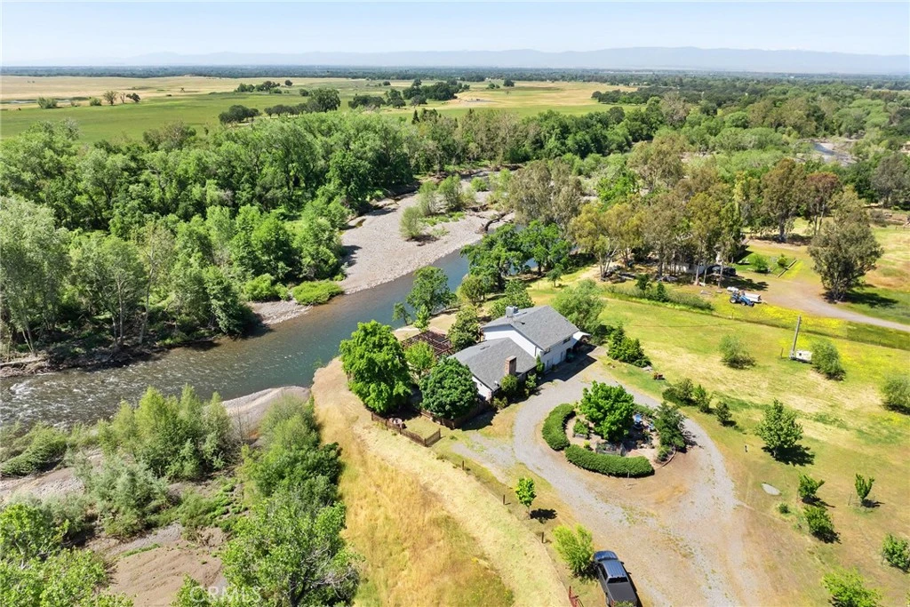 Spectacular 7.58 acre waterfront ranch with 40'x80' shop and owned solar. The 2,219 SF, 4 bedroom, 3 bathroom home is positioned toward the back of the property with year around tranquility provided by the running water of Mill Creek. The primary suite bedroom features a deck overlooking the water. Wildlife such as bald eagles, deer, turkey and of course fish inhabit the area so keep the binoculars close by! As you approach the property there is a view of Mt Lassen welcoming you down the private road and through the electronic entry gate. The massive shop with roll up doors, cross fenced pasture area, storage buildings, horse stalls, hay barn, garden beds and fruit trees are well positioned in the front of the property, allowing for a multitude of uses. In addition to the well and 2500 gallon pressurized water storage tank, riparian rights to the creek water will transfer with the property. If that wasn't enough, several hundred feet of beach across the creek is included in the sale. The owned solar energy system consisting of 26 panels (11.45kW) powers this all electric ranch. There are RV hookups adjacent to the garage.