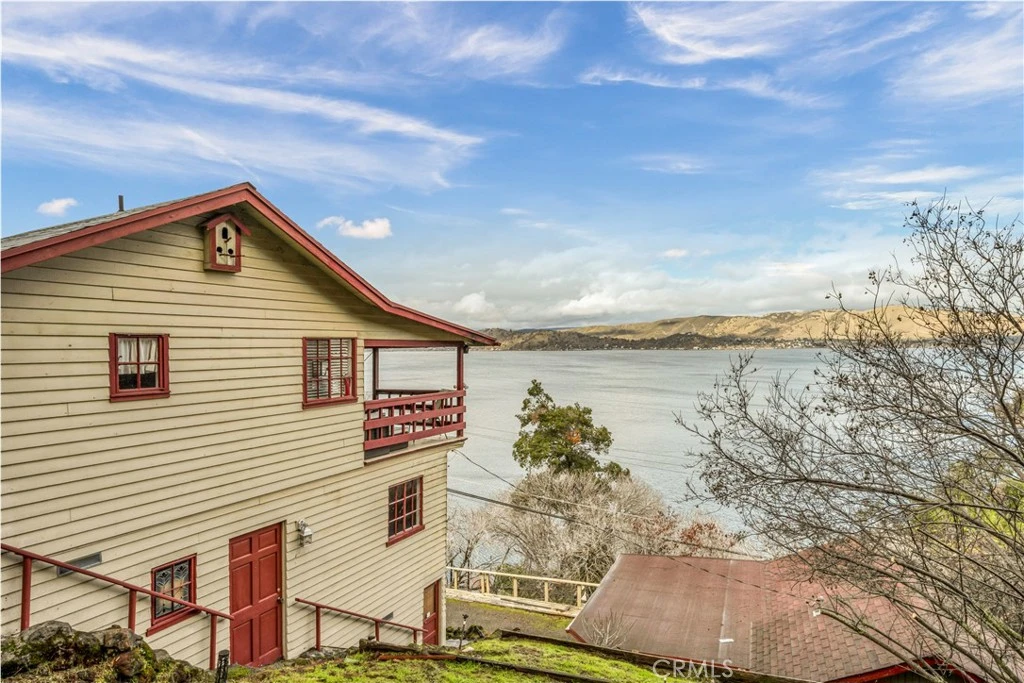 Welcome to your dream home—a captivating retreat that brings the enchantment of a treehouse to life. This home offers a unique blend of tranquility and luxury. Ascend the marble stairs to the front door, and let the breathtaking panoramic views of the lake unfold before your eyes. The home has a large 2-car carport with attached storage or workshop space. The covered deck off the living room beckons for outdoor living, equipped with ceiling fans to ensure comfort throughout the seasons. Soak in the hot tub with its lake views, or savor morning coffee on the deck while planning lazy afternoons in a hammock. The covered patio at the back of the house has built-in BBQ, perfect for entertaining. Step inside the home, the interior has tongue and groove wood walls, and marble countertops in both the kitchen and the upstairs bathroom. There are spectacular lake views from nearly every room. The open floor plan seamlessly connects living spaces upstairs. Two stained glass windows stay with the house. Upstairs features a living room, kitchen, dining area, and a 3/4 bathroom with a shower. Downstairs includes two bedrooms, a laundry room, and a full bathroom. With ample parking and an under-house storage area including an area for a wine cellar, you are set up for a comfortable life. The property is one of the only ones in the neighborhood with its own well and water filter, sparing you a monthly water bill of $125. For the watersports enthusiast, a community-owned beach awaits just a short stroll away. The co-owned beach has an annual of approx. $300/year, you gain access to 230 feet of deeded beach rights, complete with a dock/pier, shared by a close-knit community of 24 owners. This is not an HOA; just a community-owned beach and dock with deeded beach rights. Fish from the dock, launch your kayak from the beach, swim or just sit by the lake. Embrace a lifestyle of elegance, comfort, and natural beauty in this updated haven.