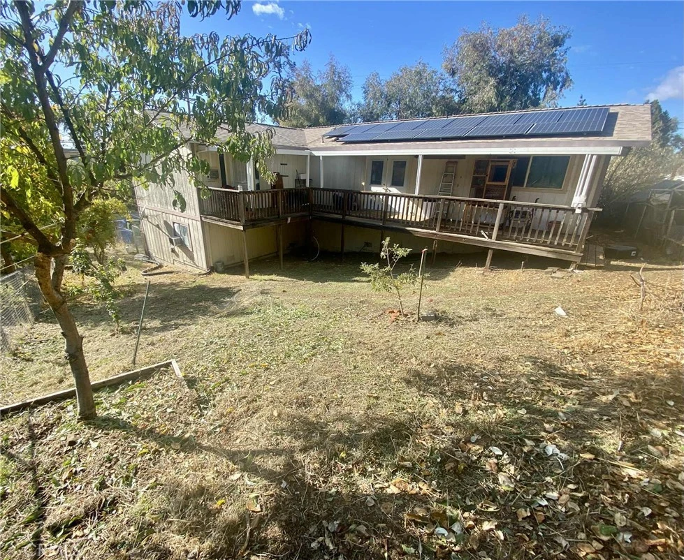 Spacious 2-story home offering over 2,000 sq ft in a peaceful Lucerne neighborhood, close to a popular lake access spot for swimming and fishing. The upper level features 2 bedrooms, 2 bathrooms, and an open-concept living area with newer mini-splits and a cozy fireplace. Downstairs includes a large garage, laundry area, and a full studio with its own kitchen, bedroom, and bath—ideal for extended family, guests, or potential rental income. Enjoy energy efficiency with a newer roof and well-functioning solar system. The large, fully fenced corner lot boasts a beautifully paved driveway and a mini orchard with plum, pomegranate, avocado, Meyer lemon, peach, apple, orange, cherry, elderberry, and grape vines. Cosmetic fixer with strong structure and endless potential—this is an incredible opportunity to create your dream lake home!