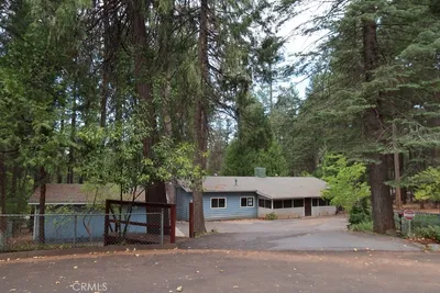Nestled in the beautiful Magalia Evergreens is this well cared for 2002 Built home set on an oversized .37-acre lot that is ready for a new owner. 2021 Generac whole house Generator, Concrete Perimeter Foundation and 2021 Heating/Air system! Fantastic Curb Appeal! A circle driveway leads to the amazing 418 square foot covered front porch enough room for family and friends to gather. The upgraded front door with stained glass window leads to the vaulted ceiling living room with updated laminate flooring, dual pane windows and large coat closet. The home offers a large second family room with a gas fireplace with custom wood mantle, vaulted ceilings, updated laminate flooring, dual pane viewing windows, laminate flooring and updated ceiling/fan light. The kitchen is located in between the two living areas and has plenty of cabinets, wrap around counter tops, 2 skylights, farm style stainless sink with viewing window, newer oven/range and updated fixtures. Off the kitchen is the dining room with a slider to the amazing covered back deck measuring 486 Square feet, plenty of entertaining room rain or shine. This home also offers an in-law floor plan with the primary on one side and both guest bedrooms on the opposite side of the home. Primary bedroom has vaulted ceilings, dual pane windows, laminate flooring, new ceiling/fan light and walk in closet. Both guest bedrooms have vaulted ceilings, dual pane windows, ceiling fans and mirrored closet doors. The laundry room offers cabinets & hanging pole above the washer and dryer and a door to that amazing, covered deck. The yard is fully fenced with black chain link and a double gate access with 9' width. The exterior siding is the cement fiber board which is fantastic against the elements. The Paradise Pines Owners Association has a ton to offer for only 310.00 per year. Clubhouse, Restaurant, Tennis Courts, Pickle Ball, Bocci Ball, Pool, Spa, Billiards, Lounge, Playground and tons of hiking trails into the surrounding canyons! Fantastic home and lifestyle.
