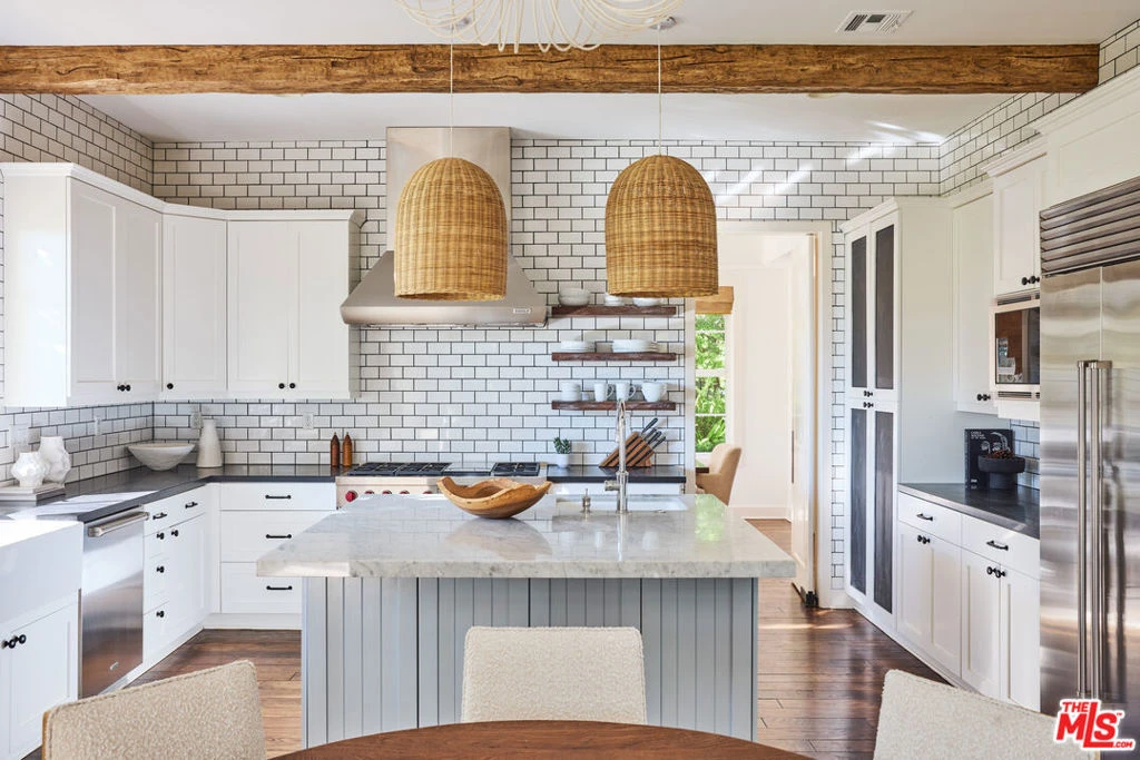 East Coast elegance meets coastal luxury in Malibu's coveted community of Point Dume, complete with Riviera II beach keys granting private access to Little Dume. Located at the end of a gated cul-de-sac, the property features verdant grounds with mature landscaping and awe-inspiring ocean and mountain views, overlooking the Santa Monica Bay and Queen's Necklace. A stone pathway meanders through the thoughtfully curated front yard, past the guest house, and into a light-filled entryway with soaring ceilings and a Dutch door. The formal living room flows seamlessly into a dining room, both surrounded by lush greenery and perfect for hosting gatherings both large and intimate. The masterfully designed chef's kitchen features beamed ceilings with a large center island, Wolf and Sub-Zero appliances, and an apron sink. A casual dining area blends transitions into a cozy den, and flows through French doors into a picture-perfect backyard complete with an al-fresco dining area beneath a pergola, a gas fire pit, and a spacious lawn to lounge and play. Upstairs, the primary suite offers beautiful ocean views and includes an en-suite bathroom with a soaking tub, dual vanities, and a walk-in closet. French doors open to a sun-soaked balcony, spanning the entire second level for endless coastline views from sunrise to sunset. Two additional bedrooms, a full bathroom, and a downstairs powder room complete the main residence living quarters, and an office on the first floor could easily be converted into an additional bedroom if desired. The detached two-story guest house features a separate living area and is complete with a full bedroom, en-suite bathroom, and walk-in closet. Additional features include two garage bays, an outdoor shower, and a large garden area complete with sports equipment. Enjoy exclusive access to one of Southern California's most private and pristine sandy beaches, perfectly situated to capture Summer swells at a variety of surf breaks and blocked from the prevailing westerly wind. This move-in-ready beach retreat, with Point Dume Elementary and Point Dume Village just a golf cart ride away, is a rare gem in one of Malibu's most sought-after neighborhoods.