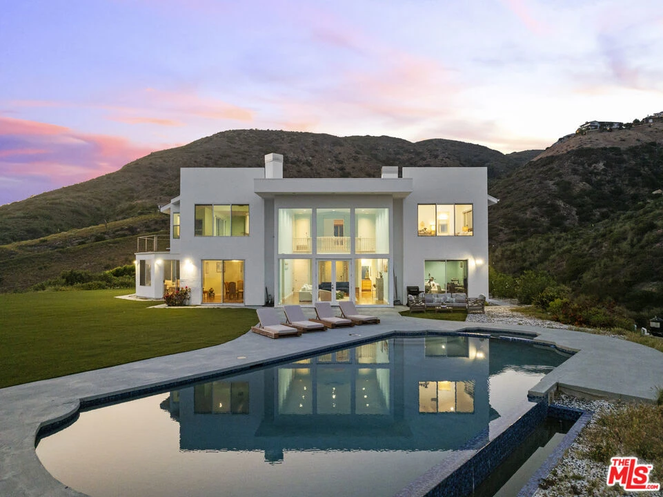 A refined coastal estate set above Pacific Coast Highway and the exclusive Broad Beach neighborhood, offering sweeping ocean, coastline, and mountain views from a private four-acre setting. This five-bedroom, six-bathroom residence delivers scale, light, and clean lines in one of Malibu's most sought-after locations. Floor-to-ceiling glass and open-concept living spaces frame the Pacific at every turn, creating a seamless connection between indoors and out. The home is designed for effortless living with expansive entertaining areas, a well-appointed kitchen, and a primary suite positioned to capture uninterrupted ocean views. The grounds are equally compelling. A view-facing pool and spa enhance the outdoor experience, complemented by a private lighted tennis court, broad lawns, and layered landscaping that enhances both privacy and usability. Moments from Malibu's best beaches, trails, and dining, this property offers a rare balance of design, land, and location. Clean. Private. Elevated coastal living.