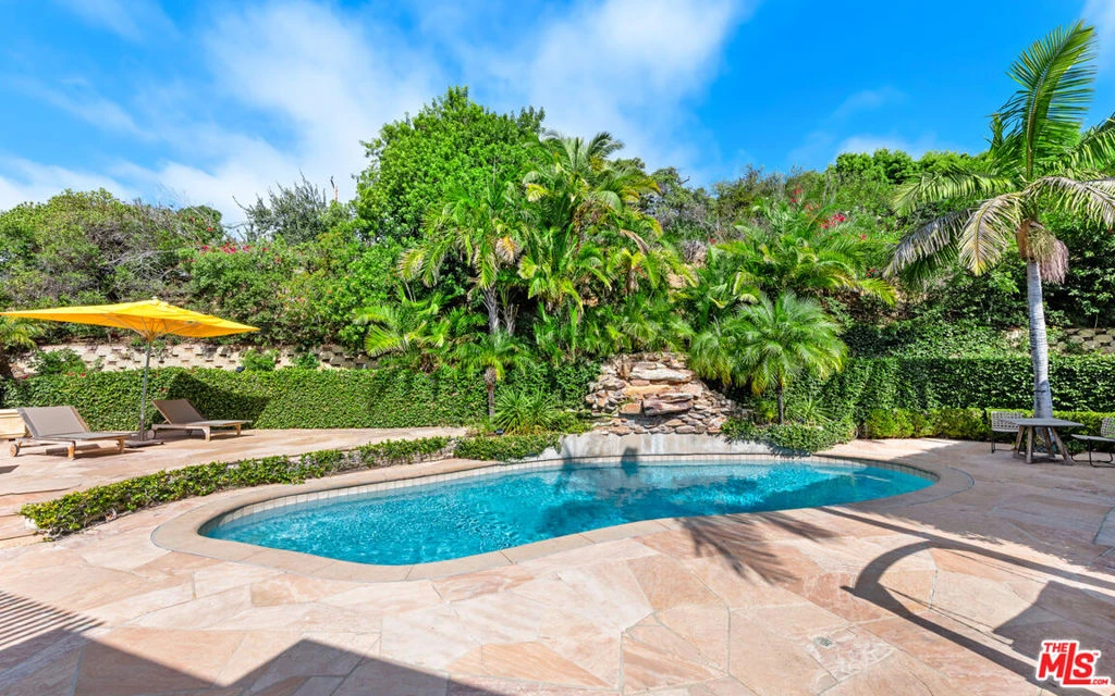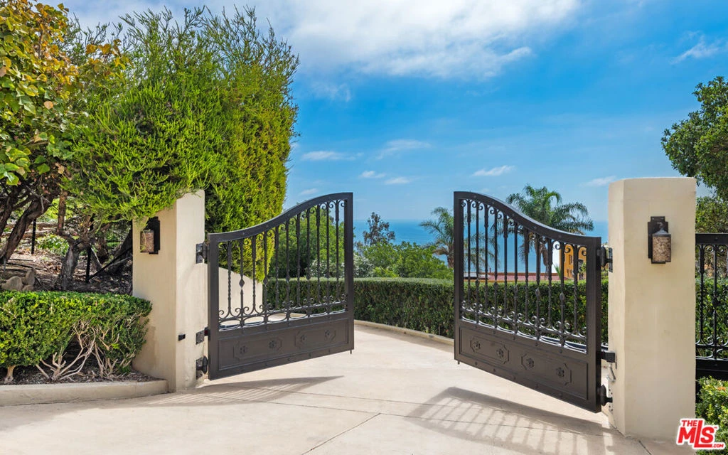 This private and gated adobe-style home offers sweeping ocean views and the valley below. The meticulously manicured grounds include a covered seating area on the patio and an adjacent lawn, ideal for entertaining. A firepit area and a resort-style pool with a waterfall complete the outdoor space. Inside this home is a large living room bathed in natural light from a multitude of windows and patio doors that envelop the enviable views of Malibu. High ceilings, hardwood flooring, built-in speakers, and a cozy fireplace provide ambiance in the living room. Granite countertops, Scandinavian-style cabinetry, and commercial-grade appliances outfit the upscale kitchen. With a Viking range and double oven, plus an additional oven, and a walk-in pantry, this kitchen is equipped to serve large gatherings of family and friends. This spacious home boasts a grand owner's suite plus four additional bedrooms. The owner's suite is outfitted with a stone fireplace, dual walk-in closets, and three sets of French doors that lead onto the expansive balcony that showcases sweeping views of the Pacific Ocean. The suite features dual bathrooms, a sauna, large walk-in, resort-style showers, and a bidet. Off the main bedroom is a private office featuring built-in cabinetry and a desk, plus access to the balcony. The four additional bedrooms are ample and two have ensuite baths and ocean views. This home also features a fully functional theatre room directly off the main living area, 220v power, a multi-zone A/C system, an alarm system, power shades, and a sprinkler system. Schedule your private showing today.