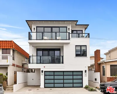 Situated just one block above the white sand beaches of Manhattan Beach and the Pacific Ocean, this stunning 95% new construction custom townhome offers 2,143 square feet of thoughtfully reimagined living space with 3 bedrooms and 3.5 baths. Extensively rebuilt with all new windows, doors, cutom cabinets. plumbing, electrical, fire sprinkler system, mechanical systems, heater, and A/C, the home blends modern engineering with refined coastal design. The top floor was structurally redesigned by an engineer, incorporating steel beams to create a dramatic, fully open great room. This expansive space showcases panoramic, unblockable ocean, Palos Verdes, Catalina Island, and sunset views from both the interior and the 24’ x 7’ deck, finished with custom exterior porcelain tile for seamless indoor-outdoor living. The gourmet kitchen features Thermador appliances, Dolamite quartz countertops and peninsula with bar seating, and designer lighting fixtures throughout. A fireplace anchors the living area, while custom modern glass railings enhance the clean architectural lines and preserve the views. Wide-plank 9” white oak flooring runs throughout, complemented by curated designer tile selections in each bathroom. The standing seam metal roof and custom modern sectional wood garage door add distinctive architectural character and durability. The home’s location on Bayview is especially unique. Positioned on the apex of a convex-shaped block between First Street and Homer, this property enjoys exceptional natural light, enhanced privacy, and maximized view corridors. The main entry level includes direct access from the two-car garage and a luxurious primary suite retreat. Designed as a true sanctuary, it features a spa-inspired bathroom, fully built-out custom closet, and its own stacked washer/dryer. From here, it’s just one flight up to the spectacular great room and view deck. On the lower level, two additional bedroom suites offer beautifully finished bathrooms, custom built-in closets, and access to a private rear patio. Ideally located between the Manhattan Beach Pier and the Hermosa Beach Pier, you’re just a casual half-mile stroll north to downtown Manhattan Beach’s renowned shops and dining, and approximately one mile south to Hermosa Beach’s vibrant downtown scene. This home embodies the quintessential Manhattan Beach lifestyle — park your car, take in the fresh ocean breezes and walk everywhere.