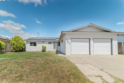 Central Manteca location at end of court with a HUGE 1/4 acre pie shaped backyard. Have your own soccer field, or a pool, or an ADU. With 3br/1ba and 1004 sqft. New interior paint. New carpets in bedrooms. Hardwood floors. Tile in the kitchen and bathroom. Hunter ceiling fans. Custom counters and cabinets in kitchen. New interior paint. Newer appliances. Washer, dryer, and refrigerator included in the sale. Landscaped front and back with automatic sprinkles. Garden area with automatic irrigation. Two sheds in backyard. Fully furnished garage. New composition roof to be installed after the close of escrow at seller's expense for a full price offer. Close to elementary and high school.