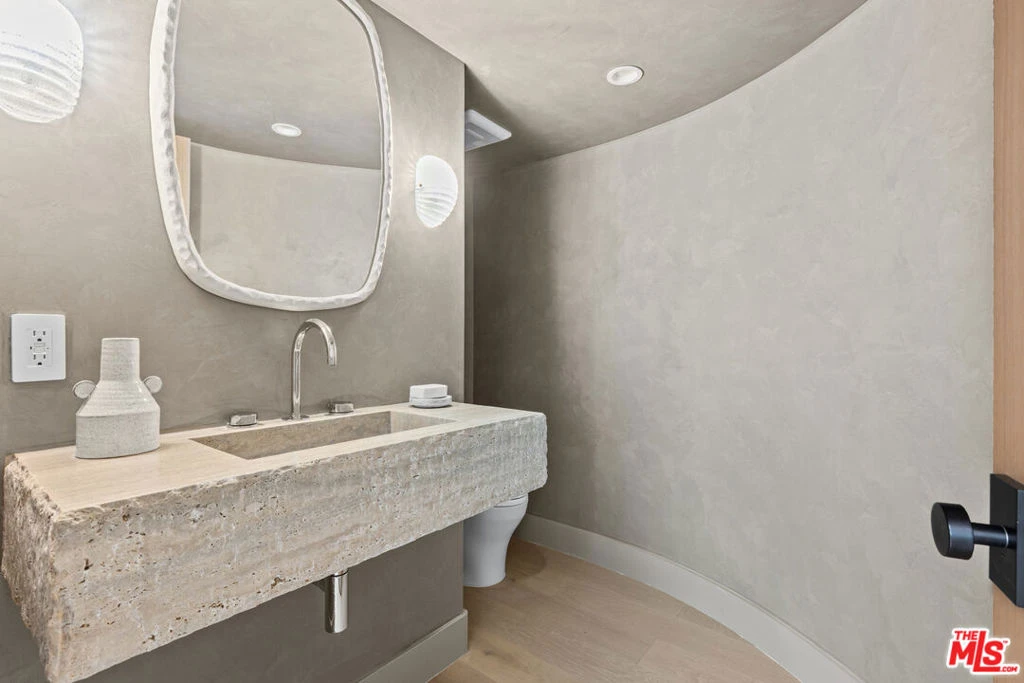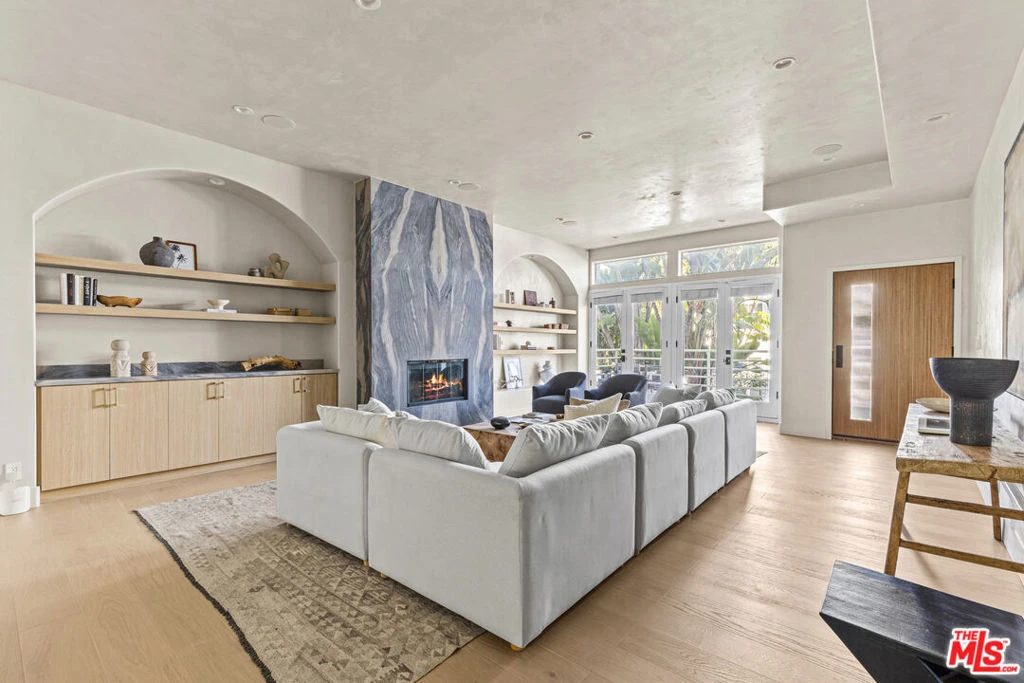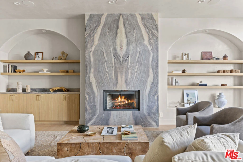 Located in the coveted Silver Strand pocket of Marina Del Rey, just steps from the sand sits this fully gutted and exquisitely remodeled townhouse showcasing exceptional craftsmanship and curated designer finishes throughout. The light-filled living room is anchored by a striking book-matched Antolini Blue Fusion stone fireplace with custom floating shelving and cabinetry, while the chef's kitchen features Taj Mahal stone surfaces, a pot filler, integrated island mini fridge and custom designer chandeliers. Walls throughout are hand-finished in Roman Clay with spa-inspired bathrooms elevated by micro-cement and premium stone selections. The powder room highlights a hand-chiseled travertine sink with bespoke accents, while the junior suite and third bath feature refined stonework and custom oak vanities. The primary suite offers a serene retreat with a custom Travertino Bianco fireplace, his-and-hers oak closets, and a luxurious Beige Creppo stone bath complete with dual vanities, rainfall shower and soaking tub. Additional bedrooms include custom fireplaces, built-ins and walk-in storage. The home is outfitted with brand-new Milgard windows, custom oak doors, reeded glass accents, polished nickel Phylrich fixtures, a fully integrated smart home system and a rare four-car garage with epoxy flooring. An exceptional coastal residence blending sophisticated design, modern technology and an unbeatable location just moments from the beach.