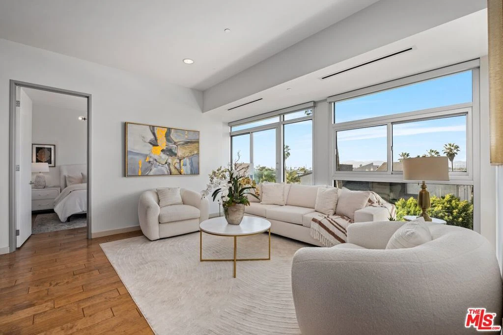 Stunning Single Level 3 Bedroom + 2.5 Baths Condo with incredible views of the beach, mountains and city. Located in the luxurious Latitude 33 Sky building which includes 24 hour security, concierge service, incredible service, maintenance and more. Experience sophisticated beachside living in this gorgeous home with an abundance of natural light. Dream floor-plan with 2 very private en-suite bedrooms + den + 2.5 bathroom spanning approx 1,550 sq ft - just two blocks to the sand! 9 foot high ceilings, recessed lighting, rich hardwood floors and dramatic floor-to-ceiling glass, showcase the stunning ocean and mountain views and fresh ocean breeze. The gourmet kitchen features top-of-the-line and Sub Zero appliances, gorgeous stone countertop with bar seating, and a wine fridge. The primary suite is spectacular with floor to ceiling glass windows, huge walk-in closet and the primary spa like bathroom includes dual vanities, separate tub and shower with glass enclosure, plus private toilet room. The 2nd bedroom is en-suite with ample closet space and floor to ceiling glass windows. Building amenities include an onsite gym, concierge, security, and parking garage with 2 assigned parking spaces and dedicated electric vehicle charging. Guest parking available. Close to Abbot Kinney's renowned shops and eateries, Pier, Venice Boardwalk, bike paths, and the best beaches in Los Angeles!
