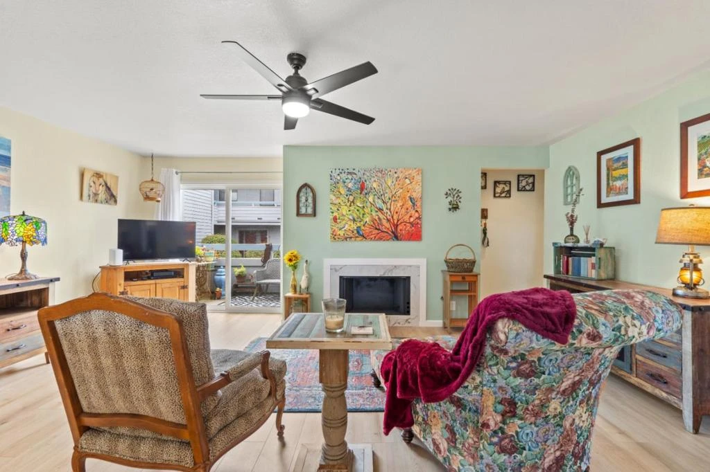 Welcome to your beautifully upgraded condo in the heart of Marina! This inviting 2-bedroom, 2-bathroom upper floor unit perfectly blends modern convenience with a cozy ambiance, making it the ideal retreat for relaxation and entertaining. Step inside to discover a bright and airy living space, enhanced by brand-new stylish flooring that flow seamlessly from living room to the kitchen. The heart of the home boasts a sleek kitchen, featuring all-new appliances, a chic backsplash over the stove, and a new kitchen faucet. Freshly painted cabinets with new hinges and handles, offering both functionality and updated look while the hanging cabinet & corner shelf showcases your favorite decor. The living room is designed for comfort, complete with a fan overhead & fireplace offers a gas insert or wood burning. The accent wall adds character & warmth, making this space perfect for cozy evenings or entertaining friends. Both bathrooms have been thoughtfully upgraded, new flooring, baseboards, vanities & fixtures that create a spa-like atmosphere. Situated in the vibrant Marina community, easy access to local parks, dining, and beautiful coastal beaches. Don't miss your chance to call this charming condo home!