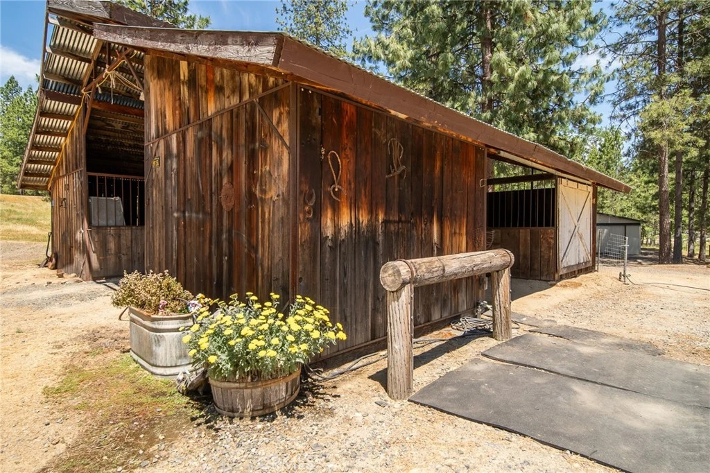 Horse property and set up in Jerseydale! Home has 3 bedrooms and 2 bathrooms and a spacious back deck over looking the pasture. A large SHOP of 1152 square feet is nestled in the grove of young pines. And a STABLE of 1296 square feet is ready to house your herd. Level and usable 3.19 acres consisting of towering pines, mature oaks and an open grassy pasture. Catered to your equestrian needs with hitching posts located at the barn as well as a wash station in front of the shop. The stable is complete with feeders, stall mats and a large tack room. Jerseydale is surrounded by Sierra National Forest land where you will find miles and miles of riding trails. Located on a quiet gravel road you could quite literally, saddle up and ride into the sierra sunsets!