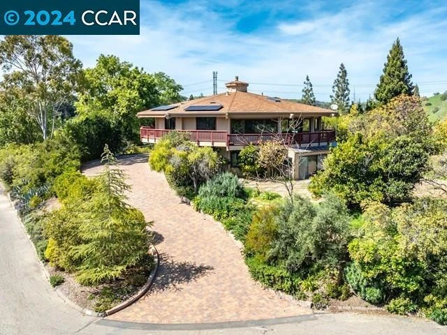 Stunning Panoramic Views! This 4283 sq. ft. contemporary style home is perched atop the knoll on a .96-acre lot, offering magnificent vistas from almost every window. It's designed by Robert Wu, a student of Frank Lloyd Wright & structural engineer, ensuring an architecture that seamlessly integrates with its natural surroundings. Spacious living & formal dining w/a wrap-around deck provide an ideal setting to enjoy the breathtaking scenery. Each room offers a unique perspective of the surrounding pristine rolling hills, gorgeous views, and majestic trees, creating a symbiotic relationship between indoor comfort & outdoor splendor. The master suite features a large walk-in closet, jacuzzi tub & stall shower. Downstairs, two-bedroom suites & a party-size family room opens to the large backyard w/over 60 fruit trees and space for ADU or expansion. First time on the market in 35 years, provides a retreat from the chaos of everyday life. This unique property offering a rare opportunity for introspection and connection with the natural world. It's more than just a home—it's a truly unforgettable living experience! Open Sunday (4/14) 2-4 PM
