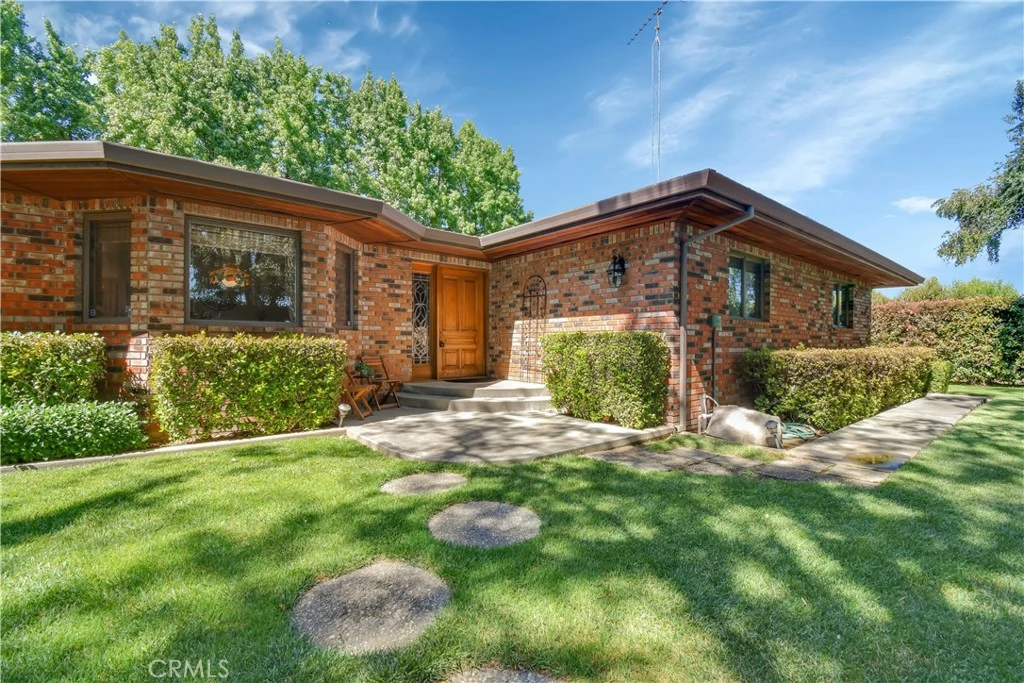 As you enter through the cypress tree-lined driveway, you will approach a stunning brick home with enchanting English-style gardens that transport you to a European setting. This spacious 2,662 sqft home features formal rooms, 3-4 bedrooms, and 3 full bathrooms, all illuminated by natural light streaming through wood-framed windows, skylights, and sliding glass doors that offer beautiful views of the surrounding greenery.Relax in the living room on cozy nights in front of the fireplace, and enjoy a glass of wine or a cocktail from the full built-in bar. This home is a perfect entertainer's delight, boasting a large back deck with stubbed-in gas BBQ connections and a built-in seating area. Additionally,there are plenty of covered areas for more parking and a breezeway that connects the garage to the home.Inside,you'll find tons of cabinet storage,large walk-in closets, and ample space for family gatherings. This private estate, set on 2.34 acres,features a circular paved driveway and a producing peach orchard that provides the best Marysville peaches. There's even room to keep a horse.Conveniently located close to Marysville, Oroville and Gridley this home offers both seclusion and accessibility. Don't miss your chance to own this exquisite estate. The brick construction ensures durability, offers a safe and healthy environment.