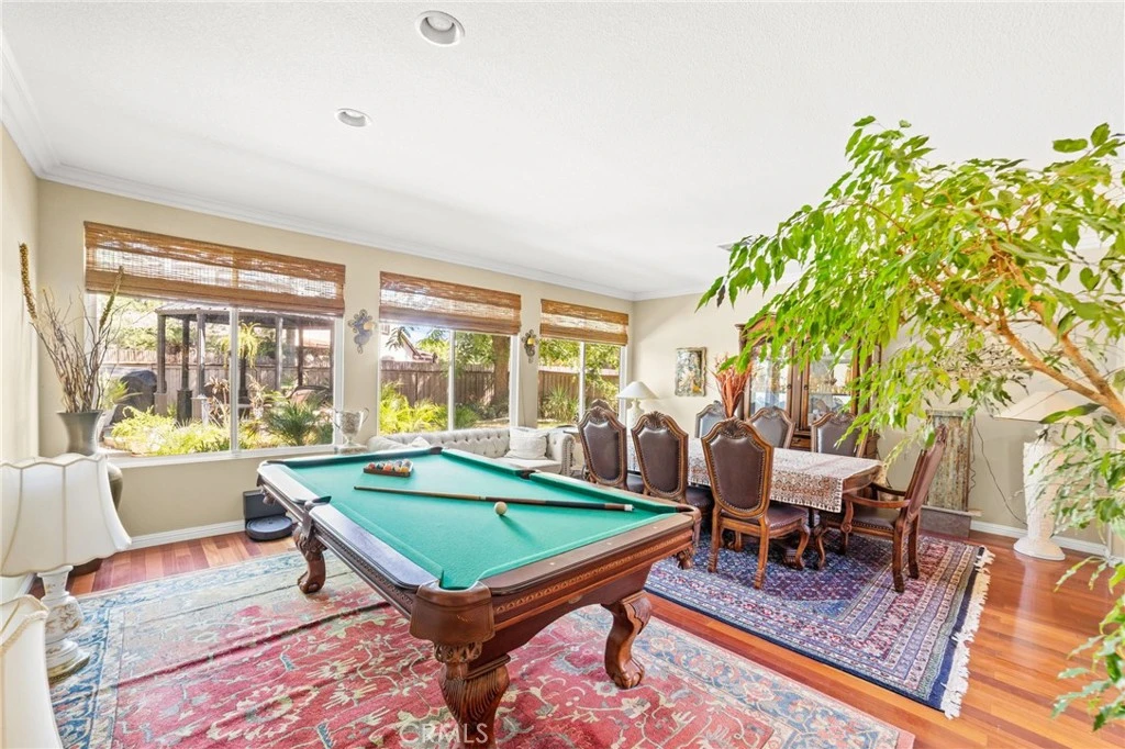 Stunning Custom Two-Story Home in Menifee, just minutes from freeways, shopping, schools, and more! This barely 4 bed, 3 bath , Big loft , is fully upgraded with premium features, including one bedroom and full bathroom downstairs, granite countertops throughout, vaulted ceilings, crown molding, custom wood flooring, built-in cabinetry, stainless steel appliances, and mature, professionally landscaped grounds. The gourmet kitchen is a chef’s dream, boasting a double oven, expansive walk-in pantry, abundant counter space, and a large island perfect for dining and socializing. The open, spacious floor plan with soaring ceilings offers both privacy and ample room for entertaining. The front and back yards are fully landscaped with custom concrete work, tall mature trees, and elegant flagstone masonry. The private, relaxing backyard features a gas firepit, built-in BBQ, and a raised gazebo, ideal for outdoor enjoyment. Additional highlights include a 3-car garage with plenty of parking and storage, plus a large driveway for extra vehicles, downstairs bedroom and lease solar panels. Nestled in a quiet community, this home is seconds from all essential amenities. Don’t miss out—this gem won’t last long! Schedule your viewing today!