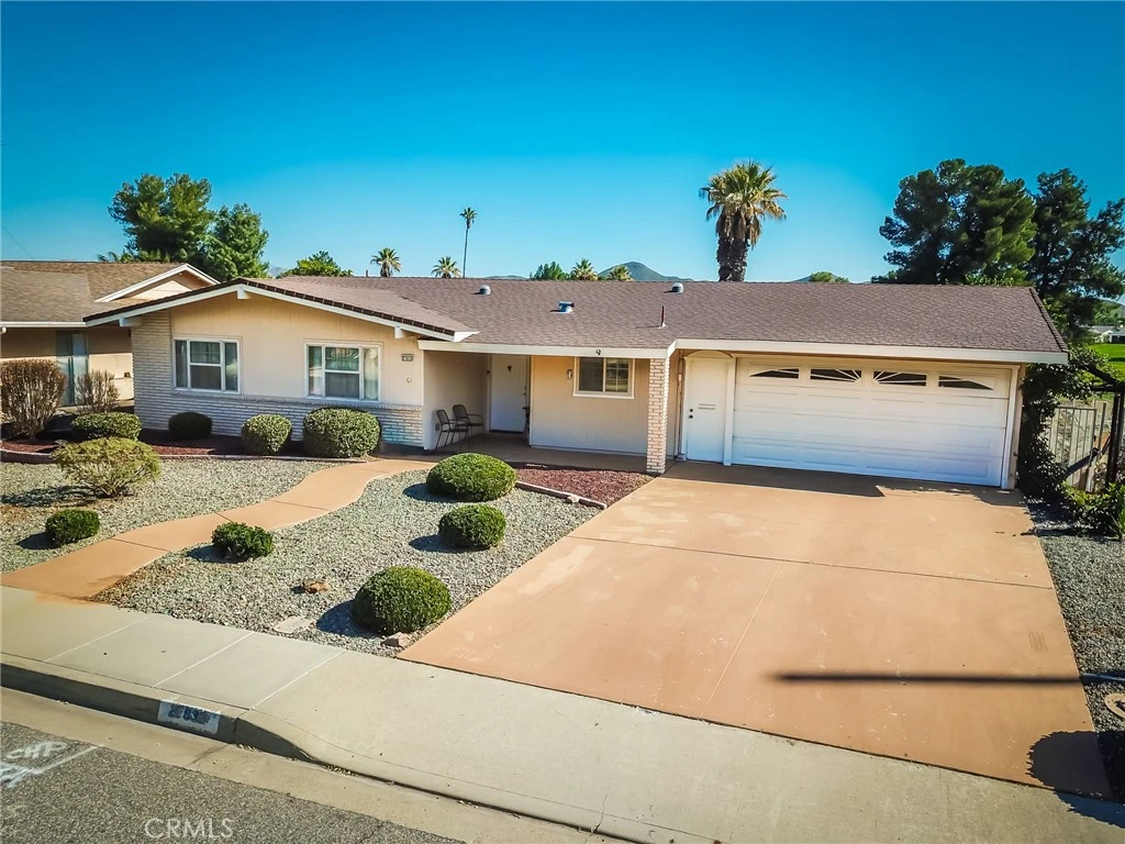 Located in the desirable 55+ community, this single-story home golf course home offers 3 bedrooms and 2 bathrooms with a comfortable, functional layout and generously sized rooms throughout. So beautiful and updated! The home features both a living room and separate family room, each with views of the backyard and golf course! creating multiple inviting spaces to relax and entertain. A separate laundry room adds everyday convenience. Nice natural lighting flows throughout the interior, adding to the bright and welcoming feel. Step outside to a spacious backyard that overlooks endless views of open greenery providing a peaceful scenic setting. The large lot offers plenty of room to enjoy outdoor living. A large garage includes extra space ideal for golf cart parking or additional storage. Conveniently located near shopping, dining, and easy freeway access, this property combines comfort and accessibility. Residents enjoy access to the Sun City Civic Association amenities, featuring a resort-like lifestyle with a fitness center, pools, spa, pickleball, horseshoes, lawn bowling, billiards, shuffleboard, meeting rooms, and a wide variety of social and recreational clubs and activities.