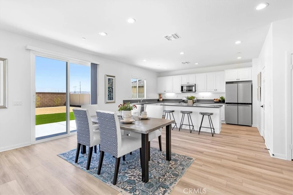 New Interior Paint, New Carpet, and Fully Paid-Off Solar — Priced to Sell. Recently reduced from $650,000 to $599,500. This thoughtfully designed two-story residence offers exceptional flexibility with 4 bedrooms plus a dedicated office and an expansive loft, creating the potential for a 5th or even 6th bedroom configuration — ideal for multigenerational living, remote work, guest suites, a home gym, or media space. The main level features a modern open-concept layout where the great room, dining area, and kitchen flow seamlessly together, providing a bright and functional environment for both everyday living and entertaining. Upstairs, the oversized loft delivers valuable separation of space and versatility, while the private primary suite offers comfort and retreat from the secondary bedrooms. A major value benefit is the fully paid-off solar system, offering long-term utility savings and enhanced energy efficiency for the next owner. Step outside to a professionally finished backyard designed for relaxation and gatherings, complete with attractive concrete hardscape, low-maintenance artificial turf, and a welcoming conversation fire pit — perfect for year-round outdoor enjoyment. Additional highlights include newly painted garage walls and finished garage flooring, modern construction advantages, energy-efficient features, a tankless water heater, an attached two-car garage, and convenient access to the I-215 freeway, shopping, parks, schools, and everyday amenities. An outstanding opportunity to own a move-in ready home with flexible living options, finished outdoor space, and built-in energy savings — now aggressively priced for immediate interest.